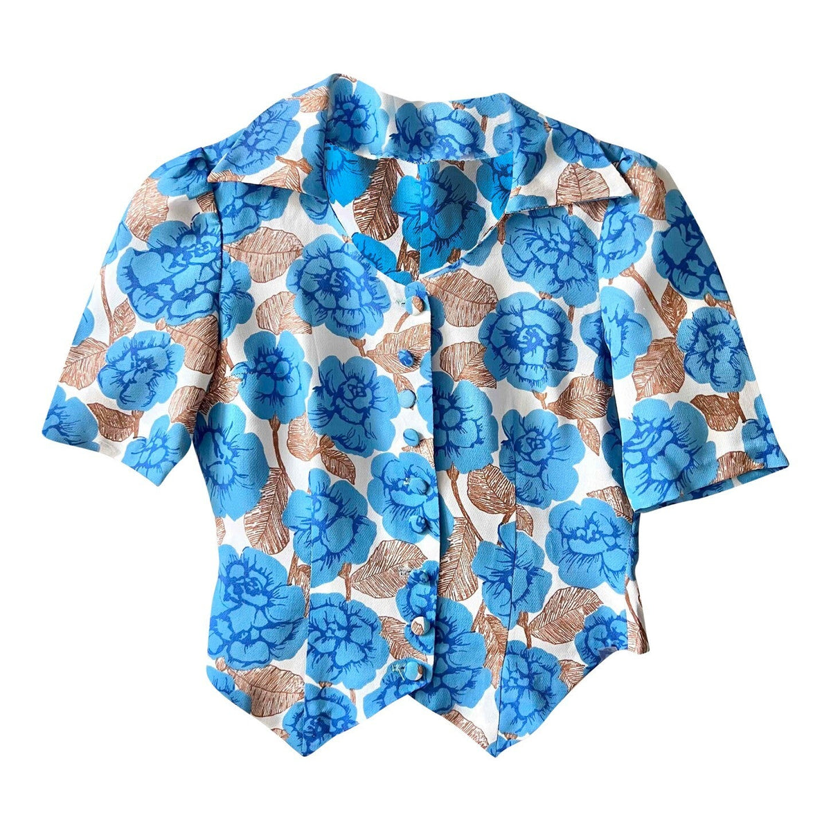 Blouse cintrée à manches courtes entièrement boutonnée devant, petites manches ballons.