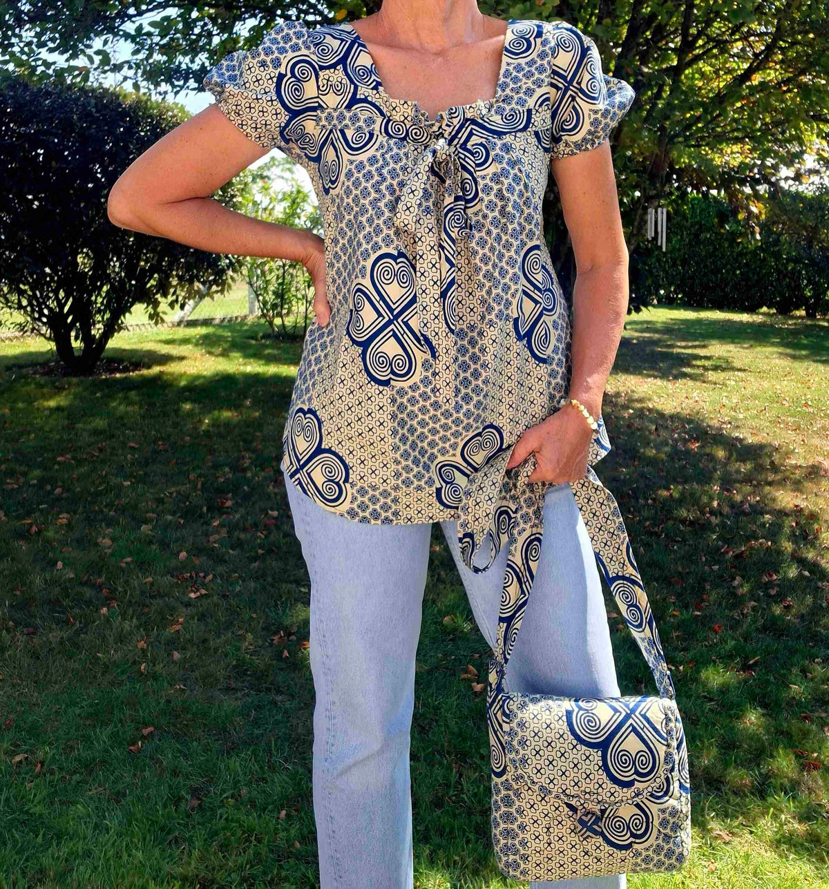 Prix unitaire parBlouse et sac assorti à motifs. Vintage 70’s