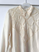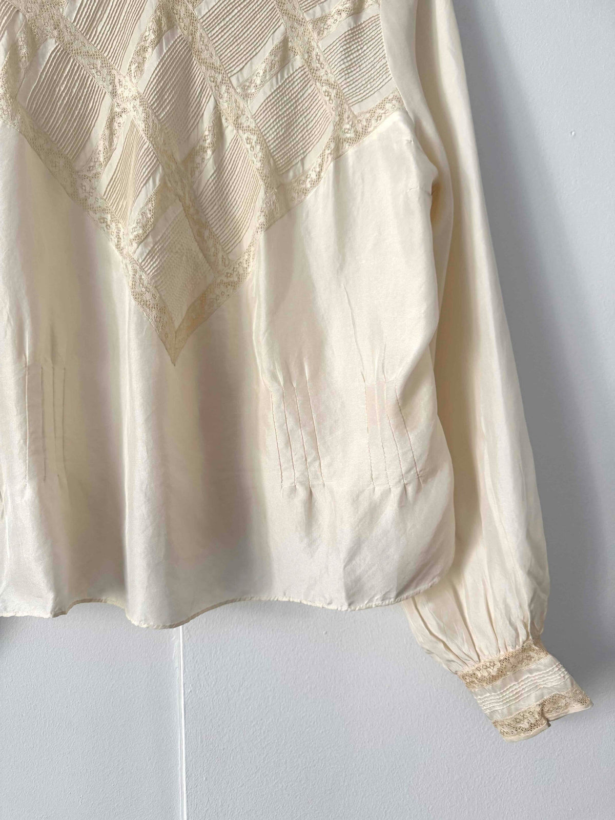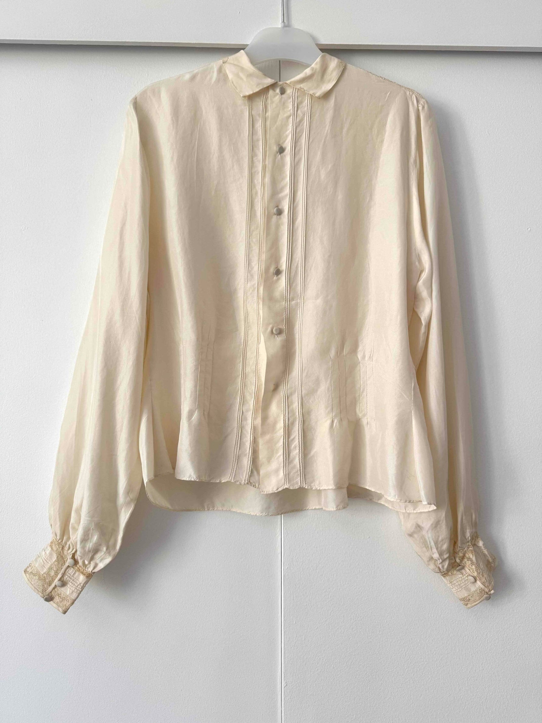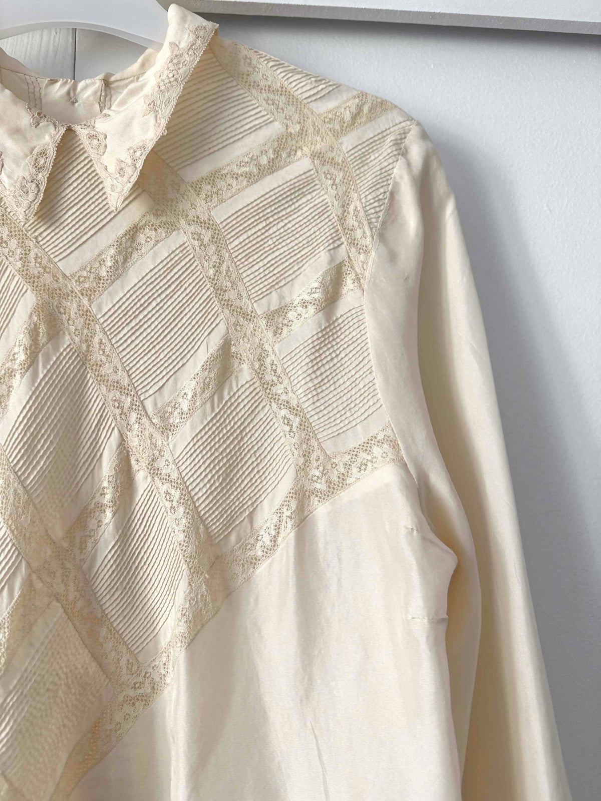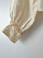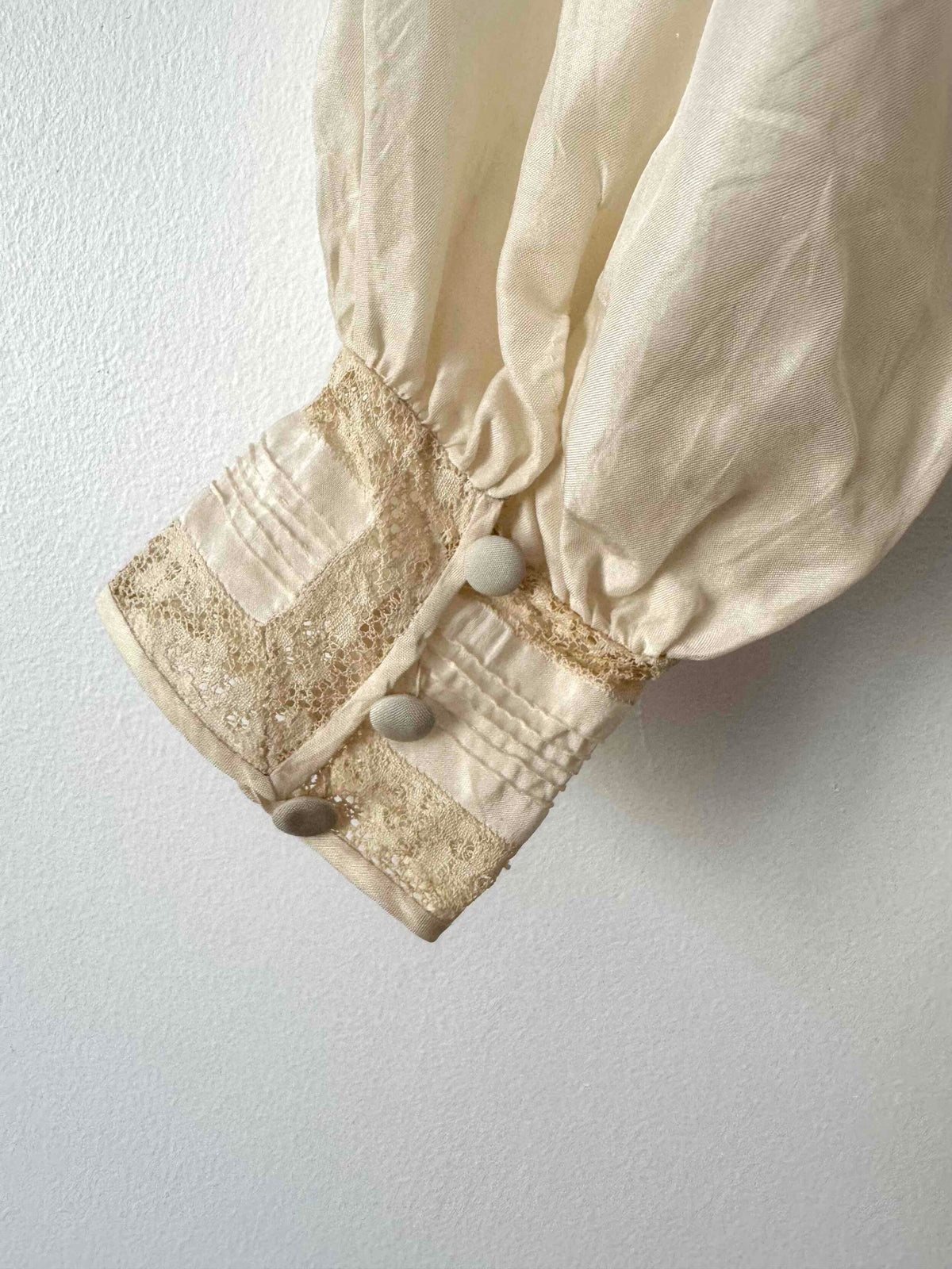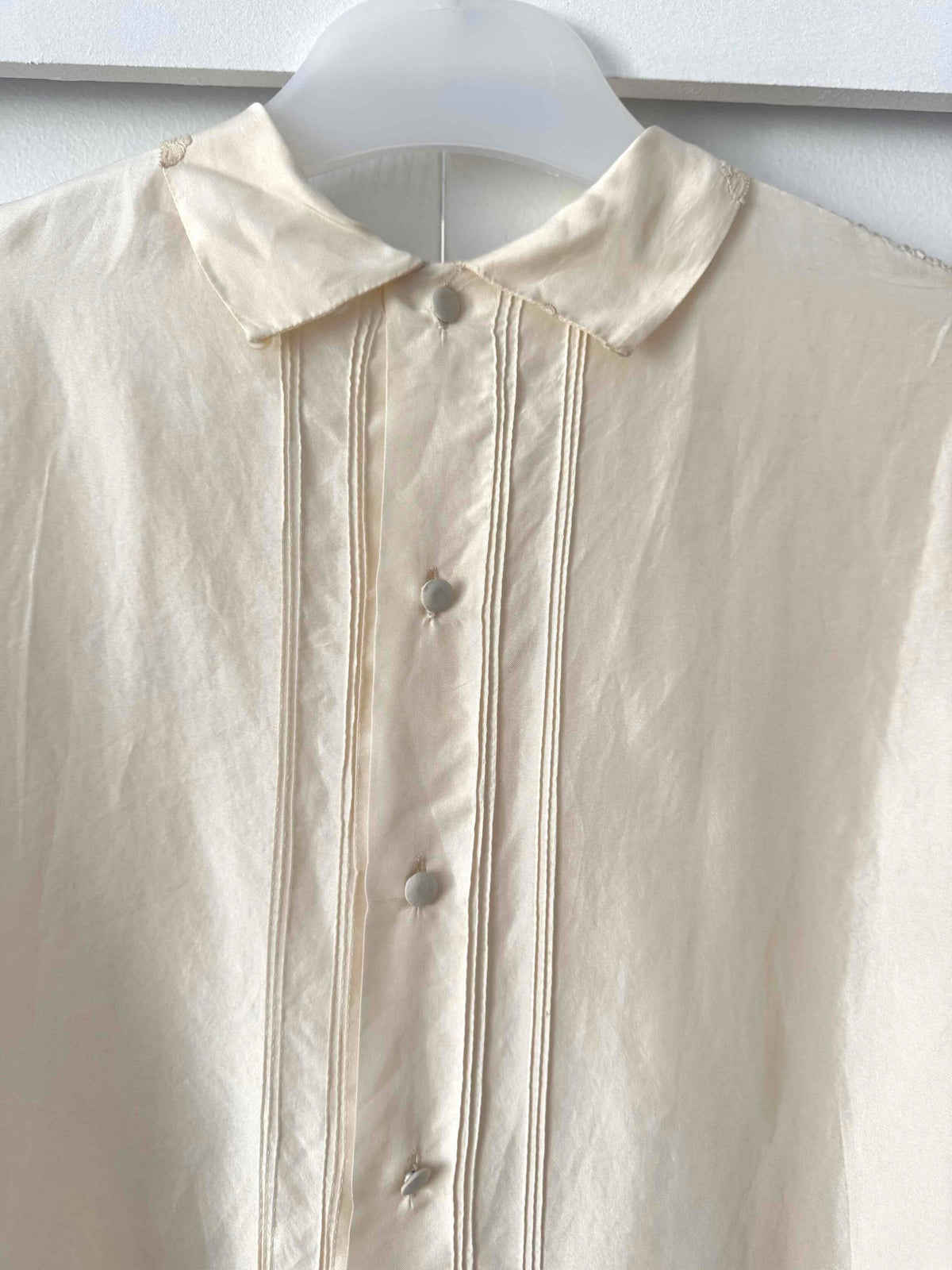 Fermeture au dos par boutons recouverts de soie ton sur ton.