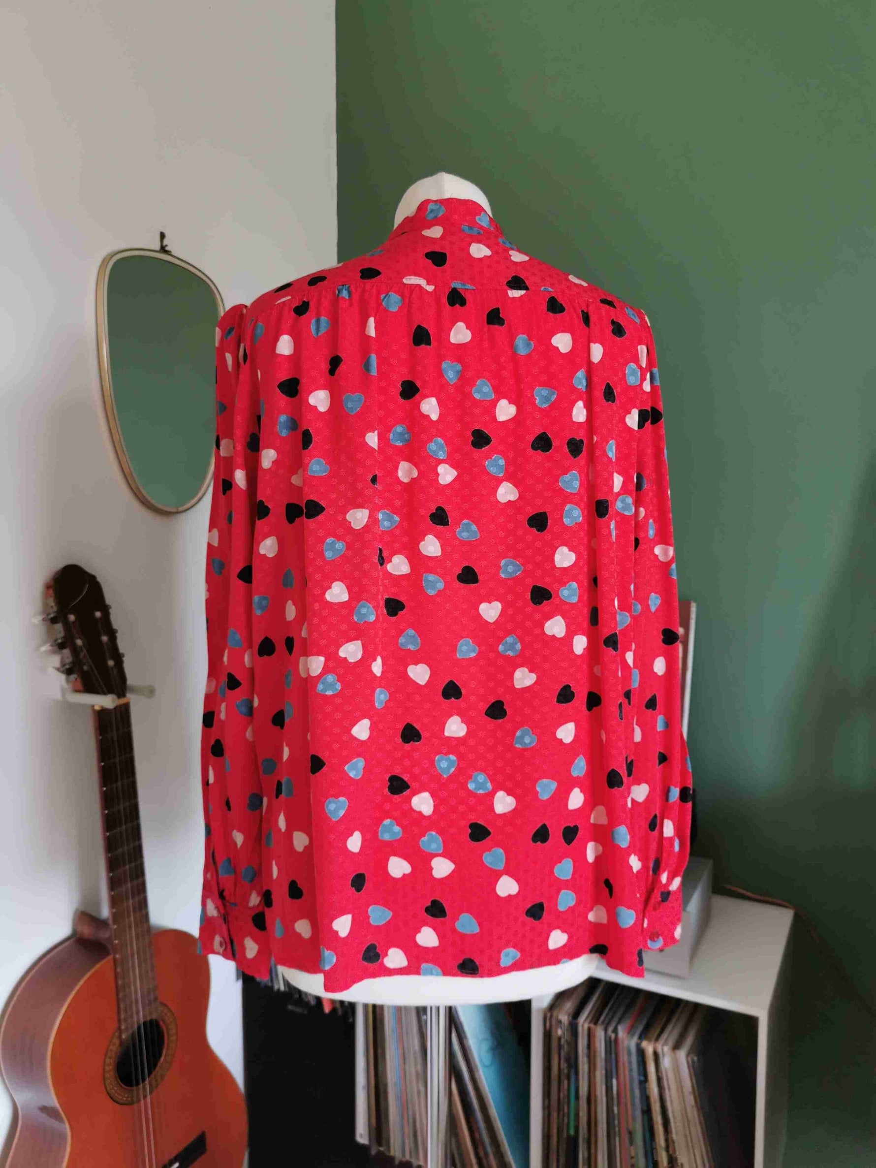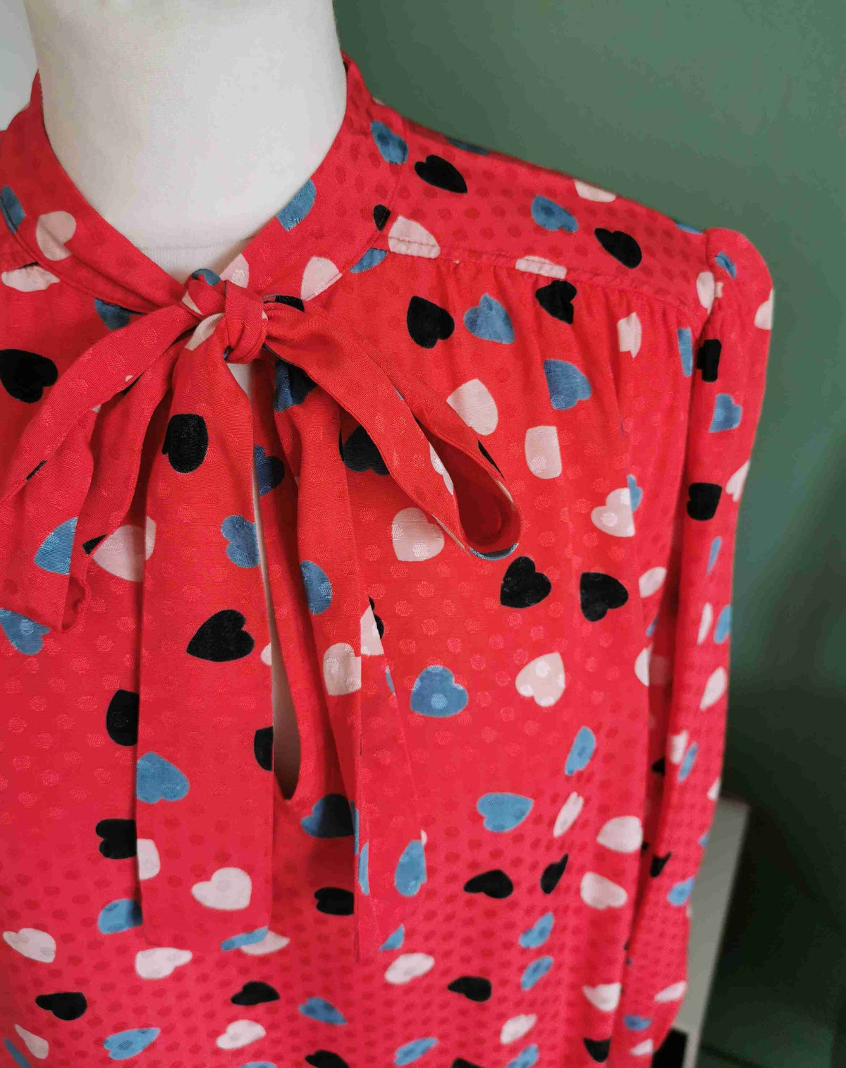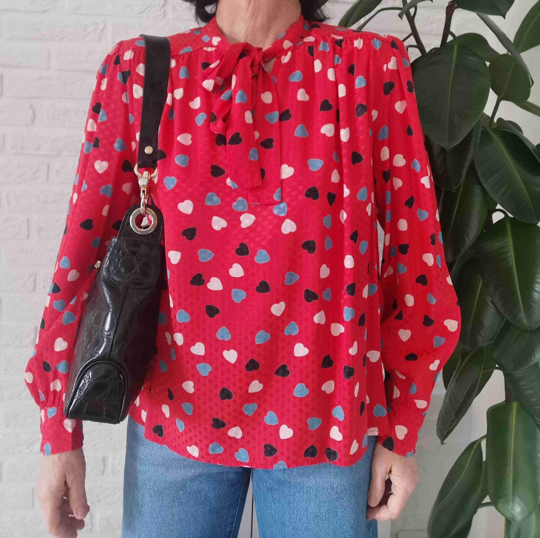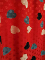 En viscose rouge vermillon et motif bleu, blanc et noir