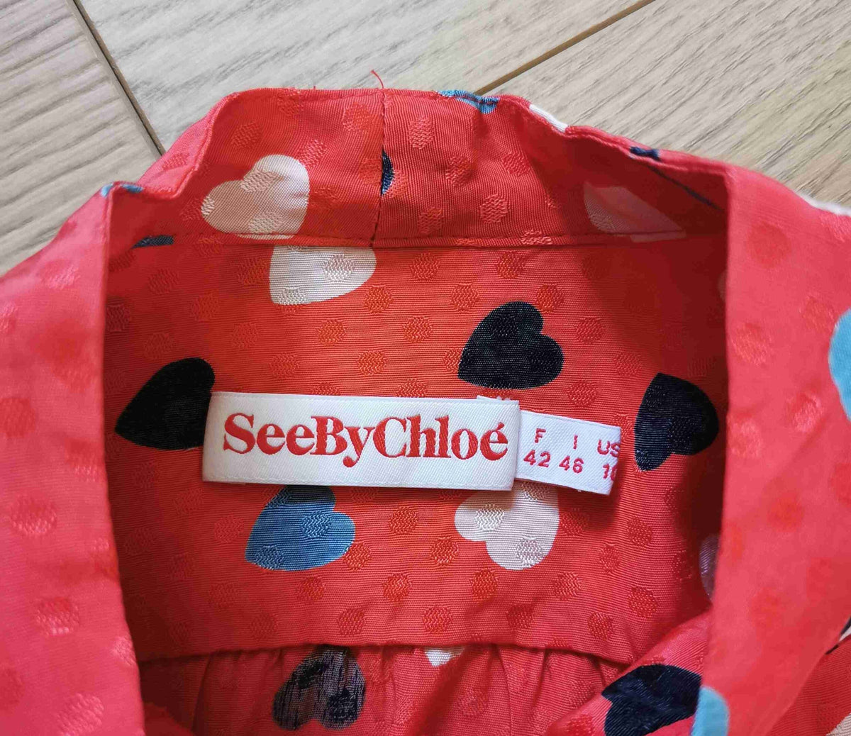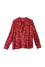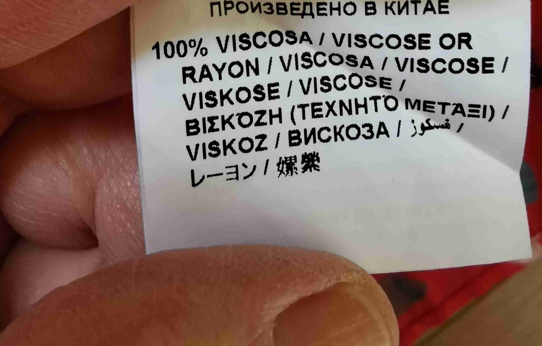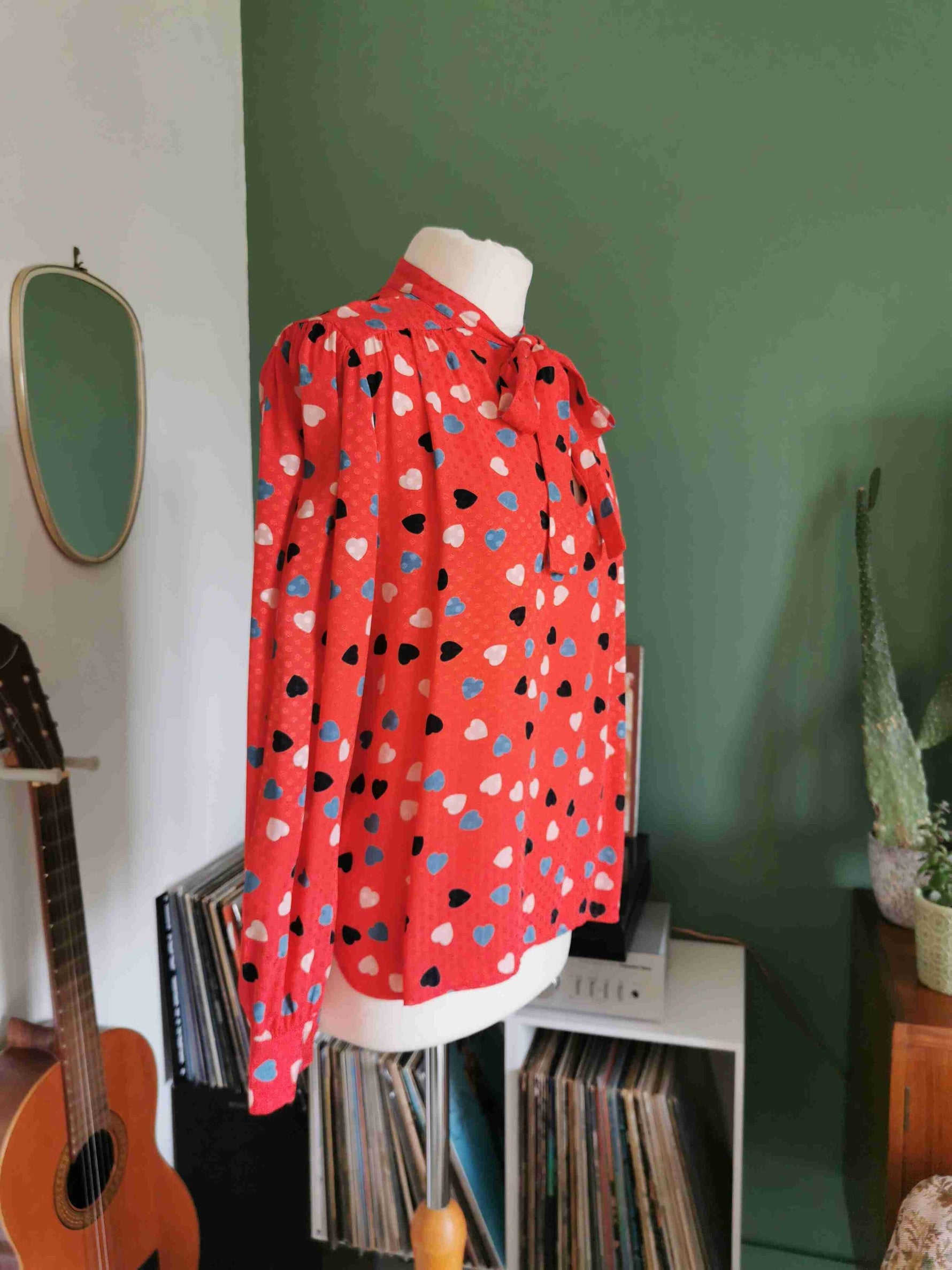 En viscose rouge vermillon et motif bleu, blanc et noir