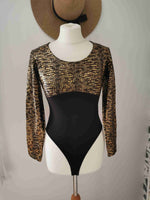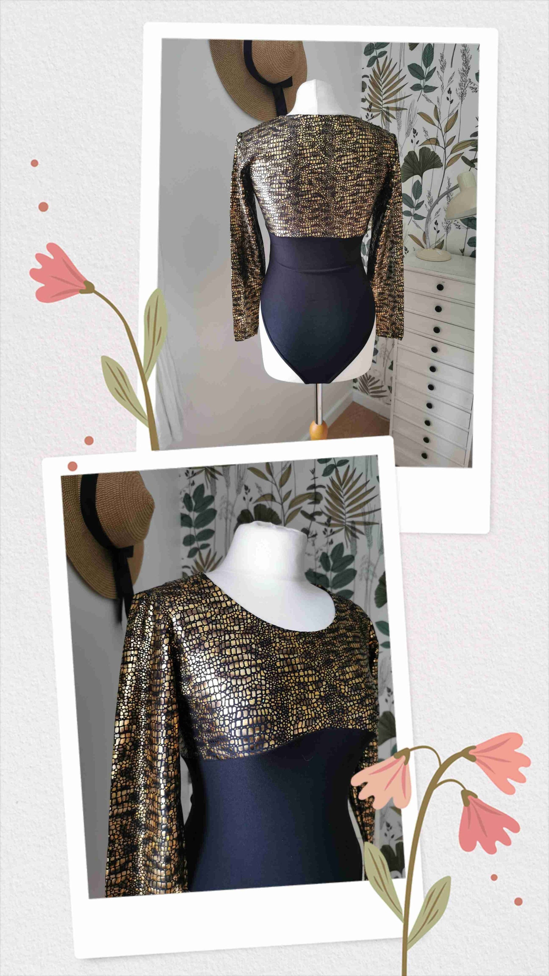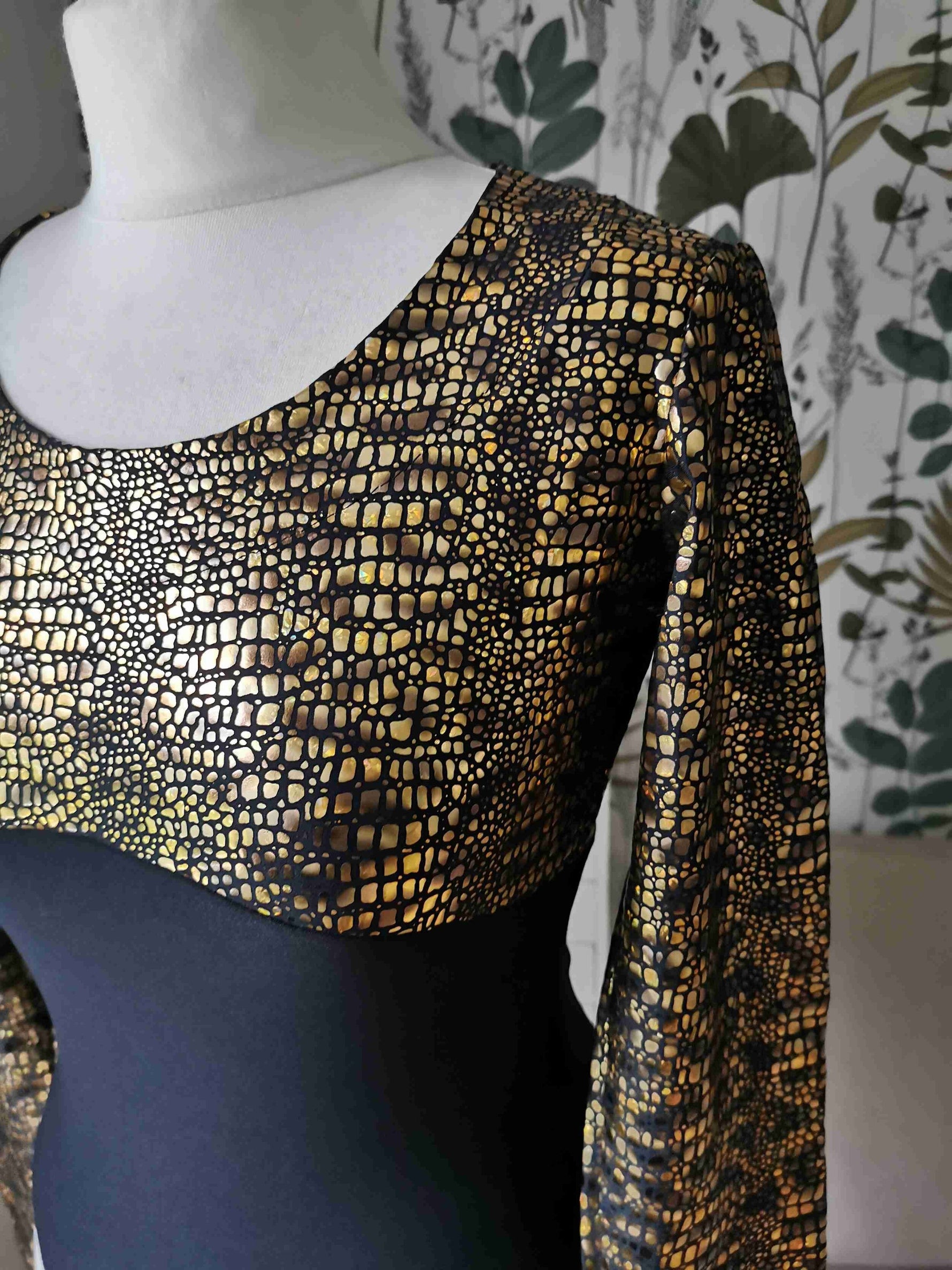 Le haut devant et dos est en matière imprimée animal doré du plus bel effet
