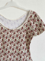 En coton extensible à imprimé fleurs Liberty sur fond blanc écru.