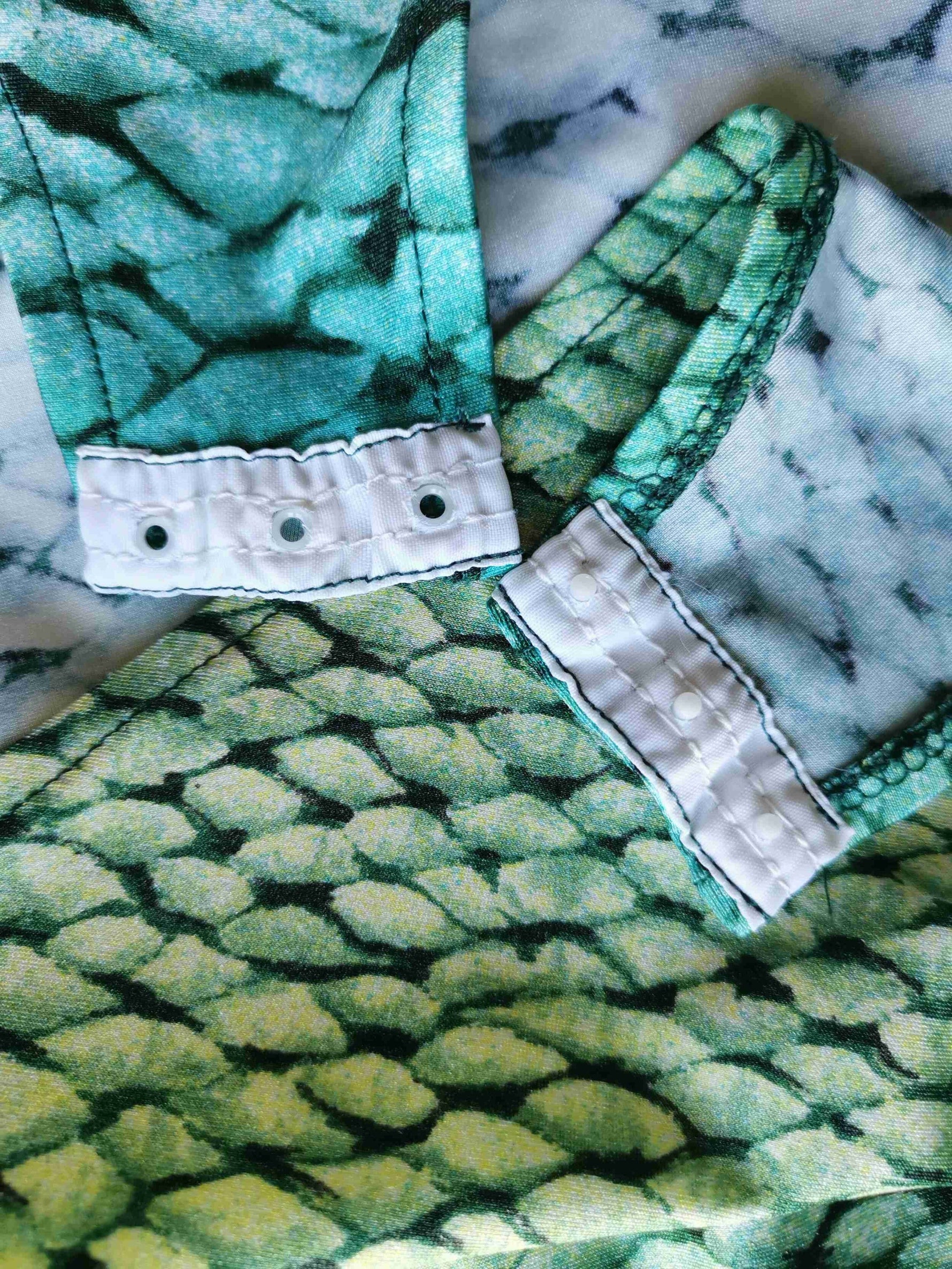 À motifs d'écailles aux nuances de vert du plus clair au plus foncé en passant par le vert émeraude