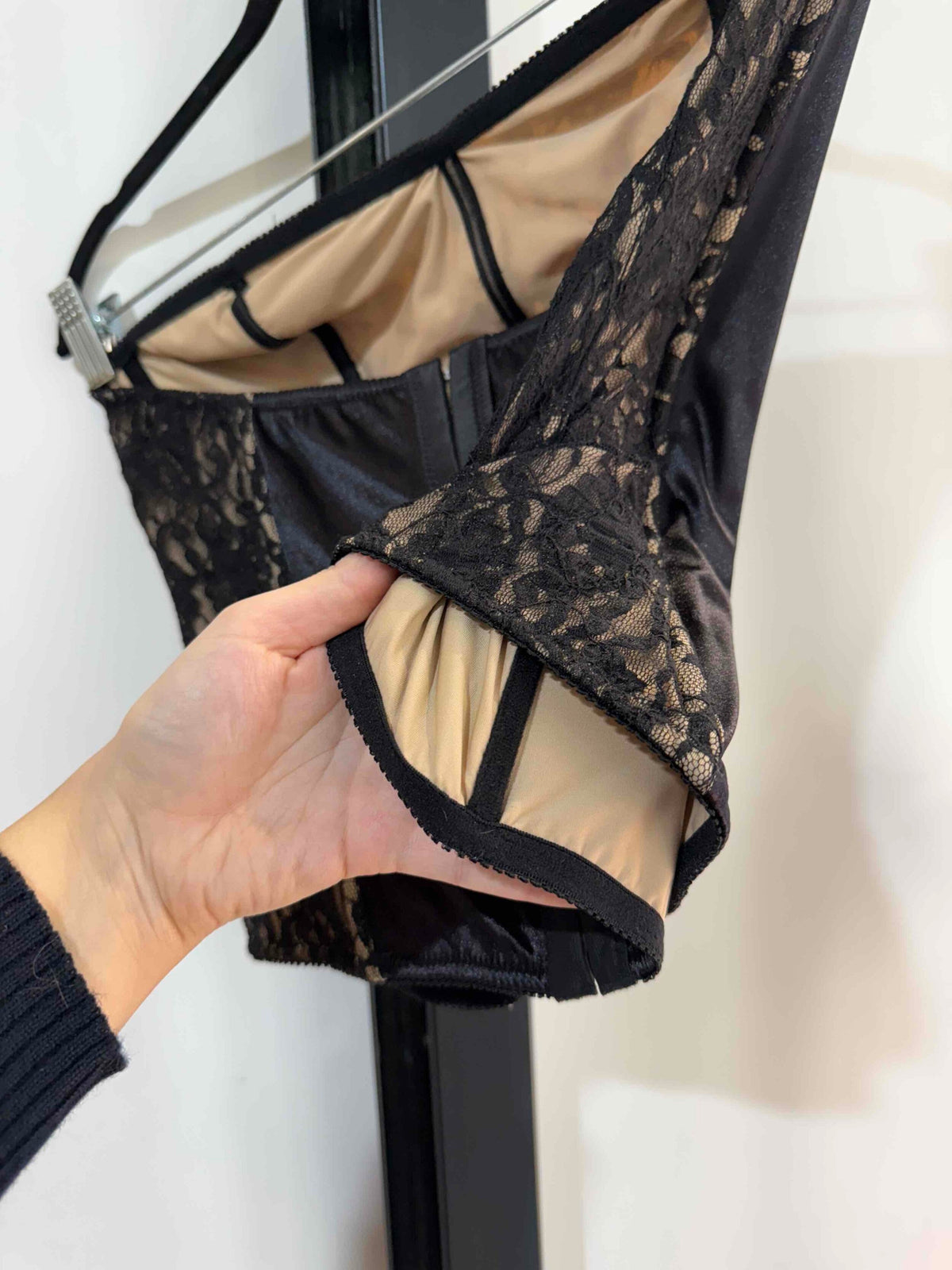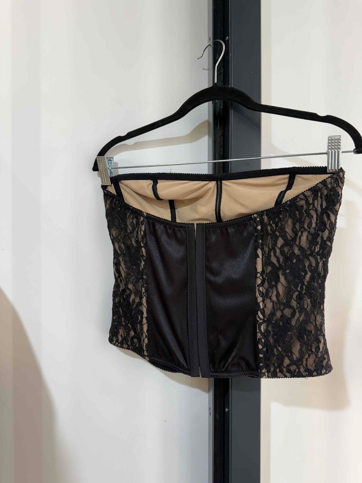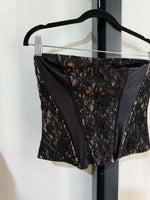 Prix unitaire parBustier 2000s en dentelle et tissu strech noir. Taille S/M. agrafes dans le dos. Excellent état.