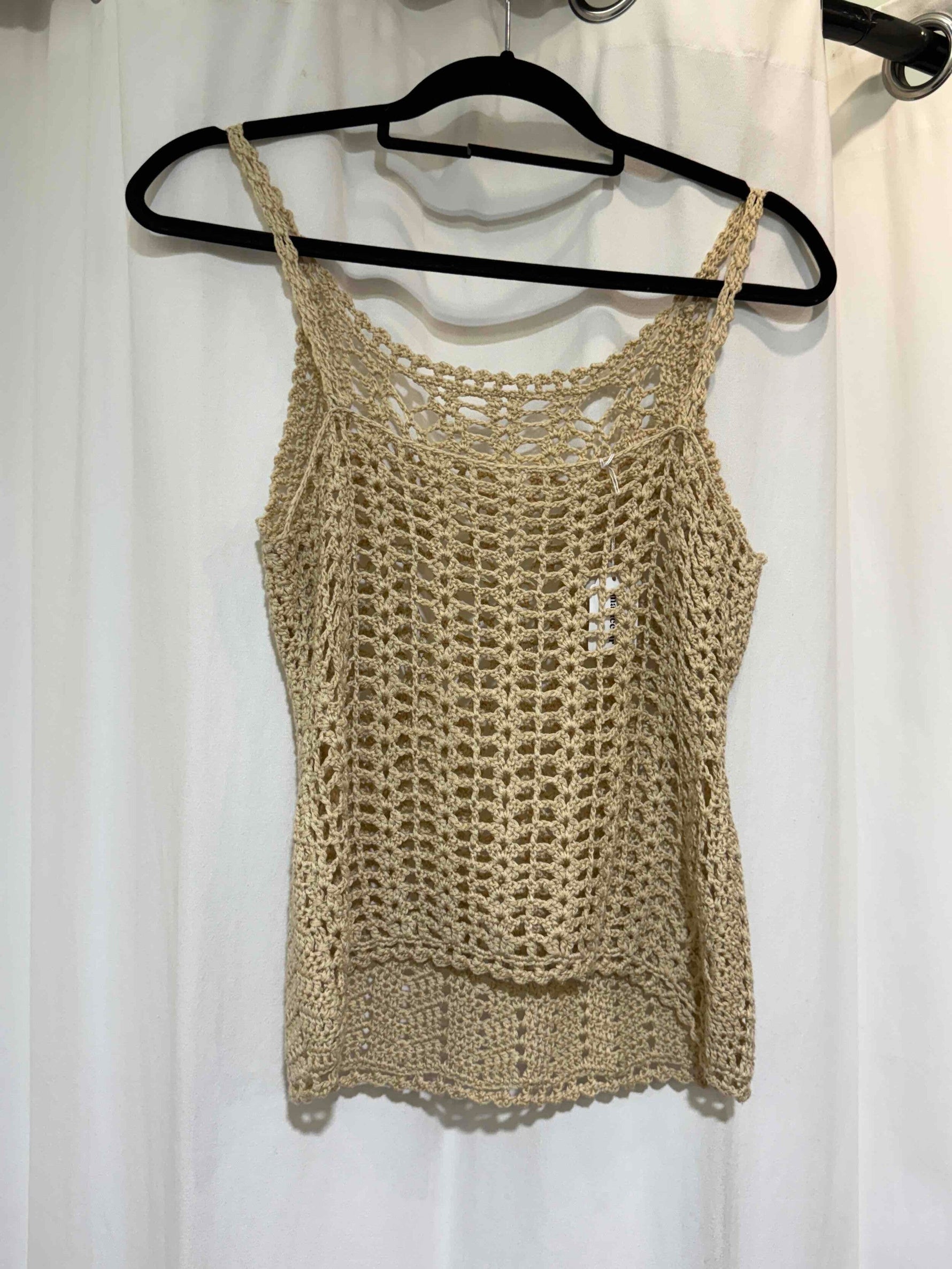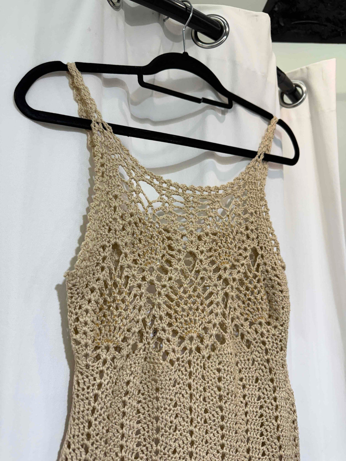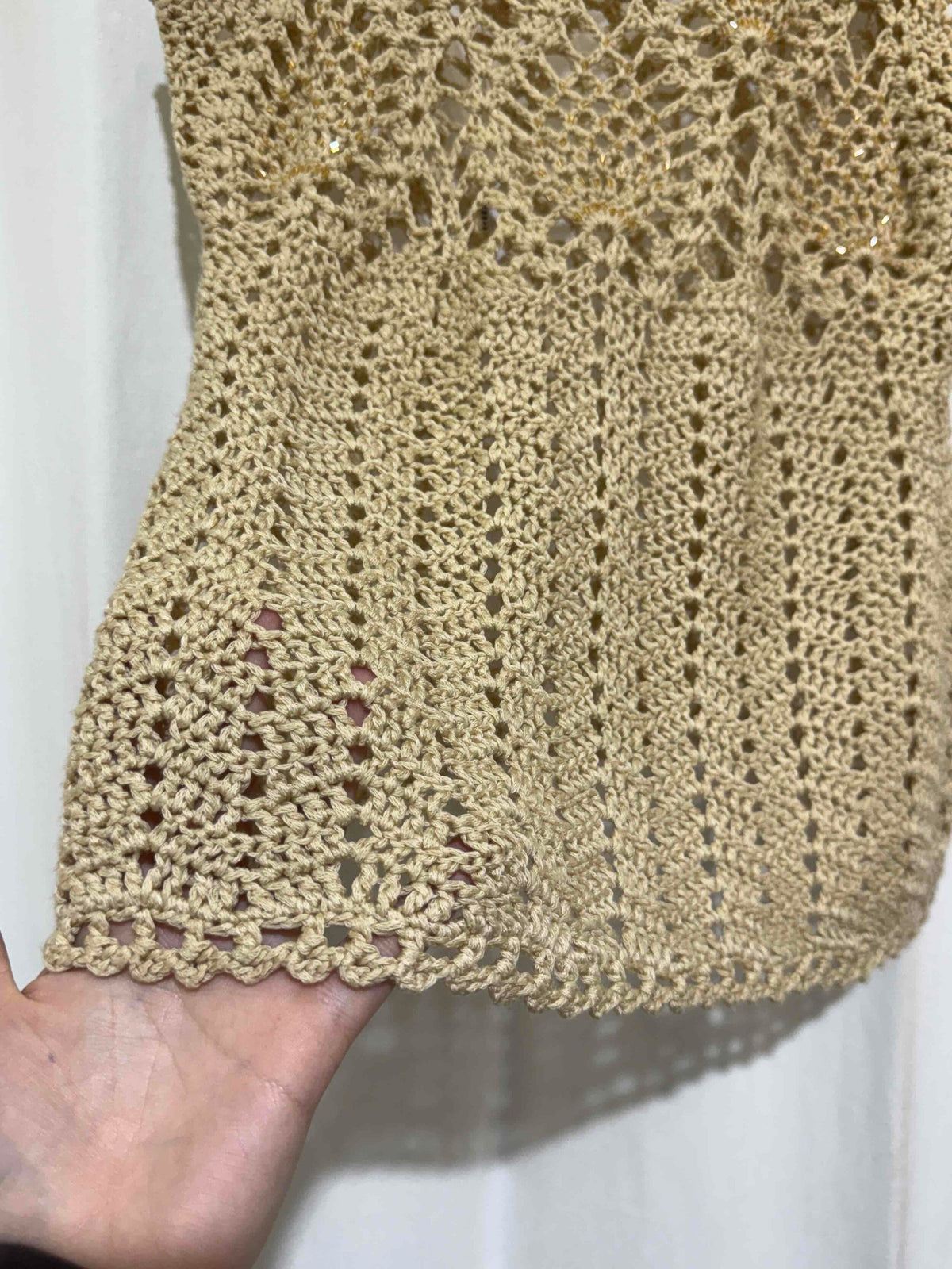 Prix unitaire parCaraco en crochet fait main beige avec des perles bordées. Maille ajourée, transparente. Coton doux. Taille S / M.