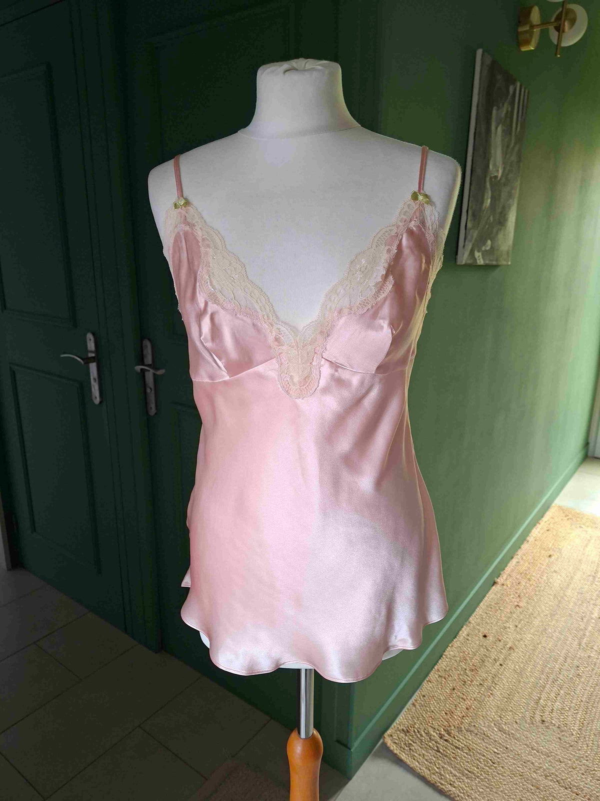 Prix unitaire parCaraco en soie rose et dentelle écrue