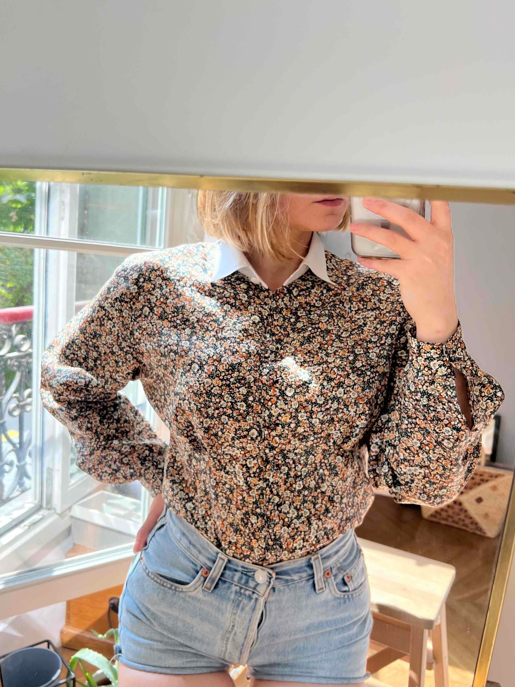 Prix unitaire parChemise à manches longues à fleurs. Col blanc. Années 90s, belle coupe.