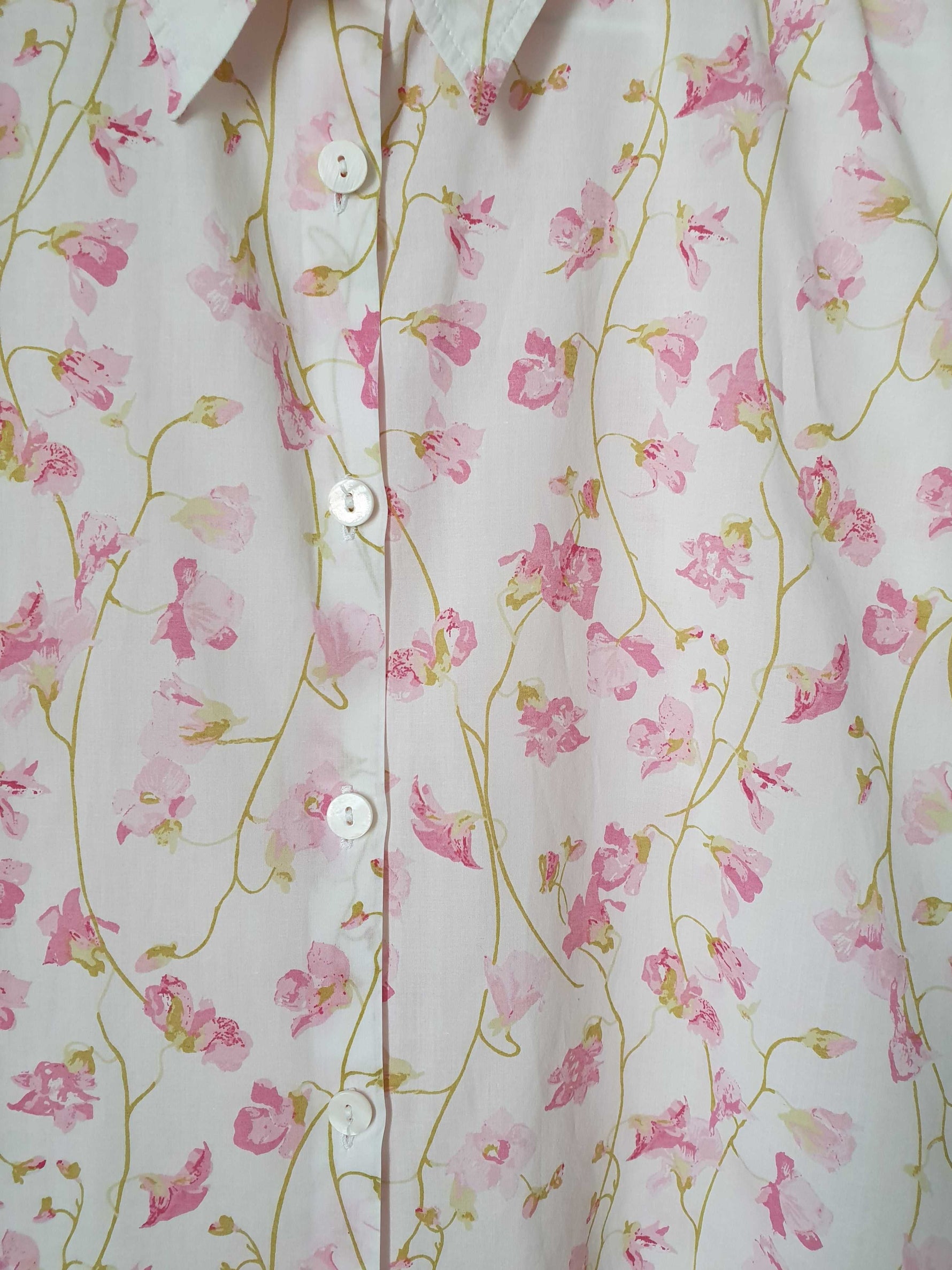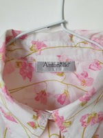 Prix unitaire parChemise blanches avec fleurs roses et vertes.