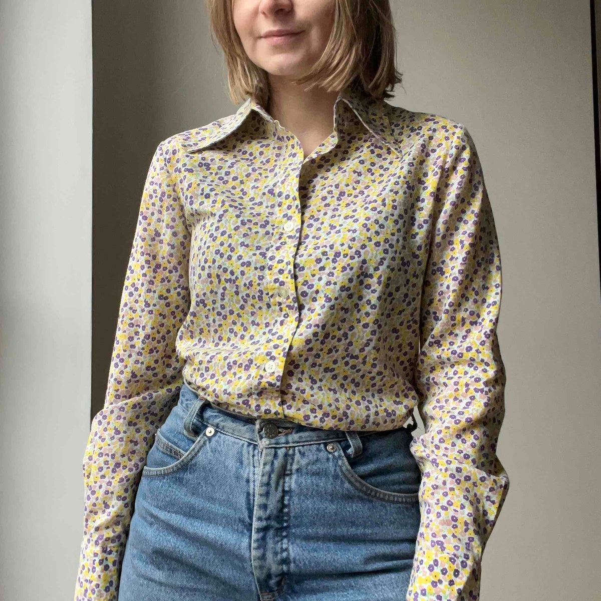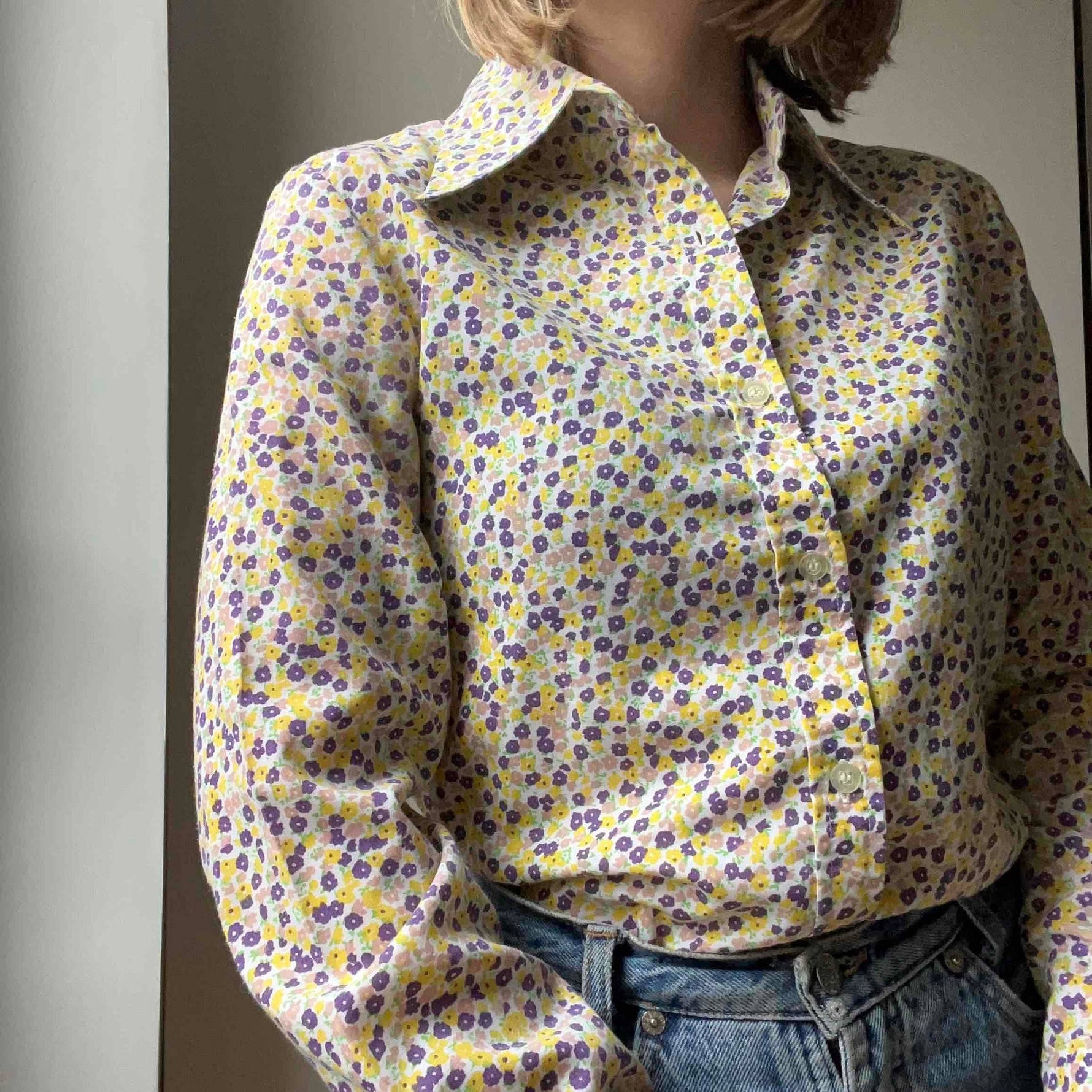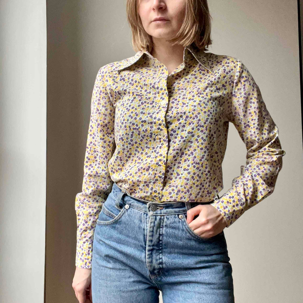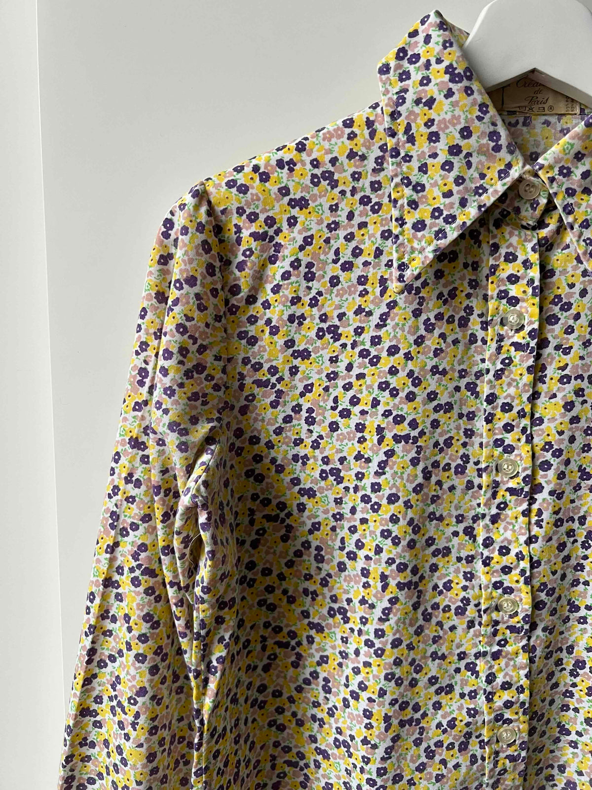 Prix unitaire parChemise à fleurs années 70s, à fleurs jaunes et violets sur fond blanc. Excellent état.
