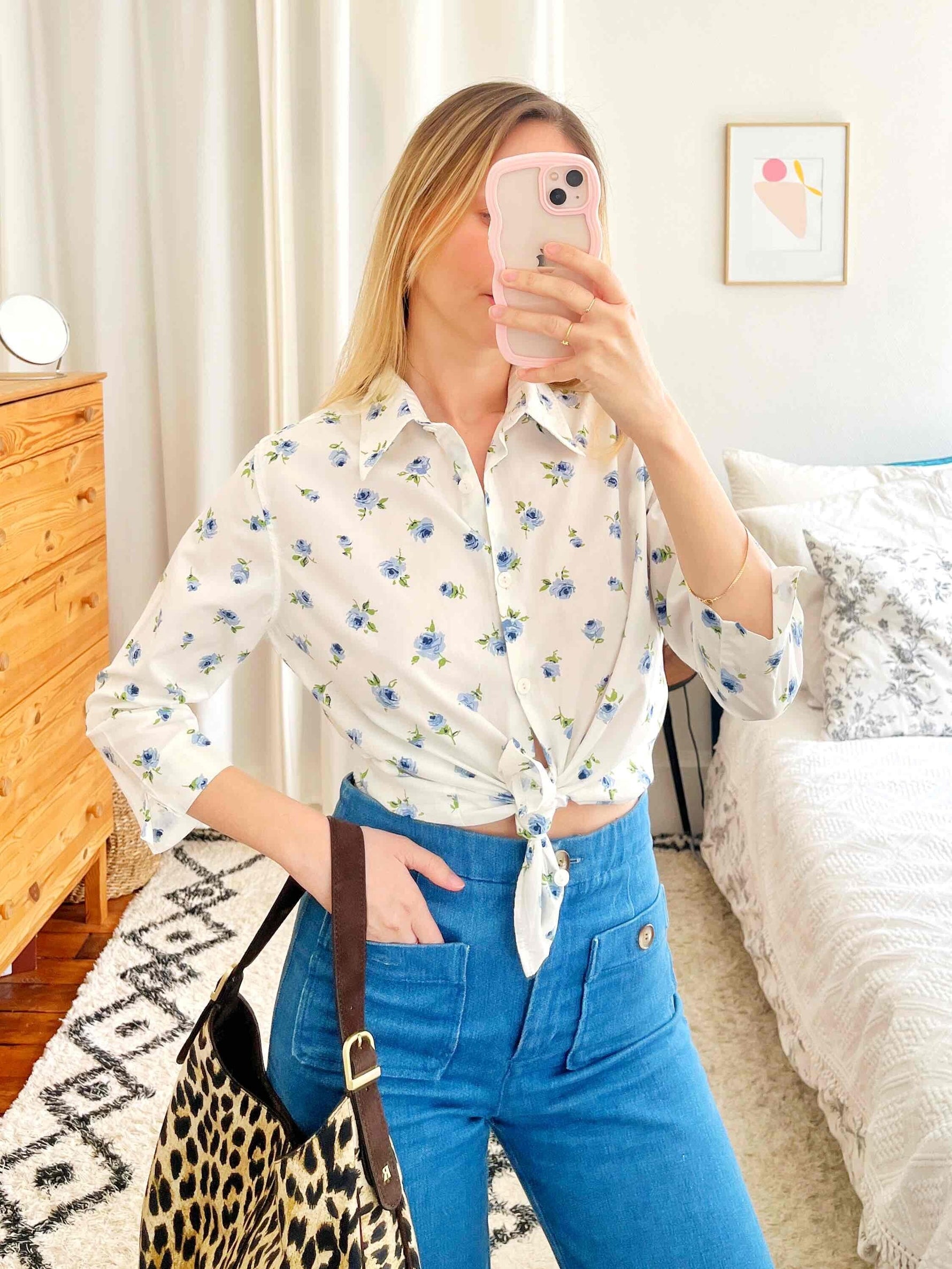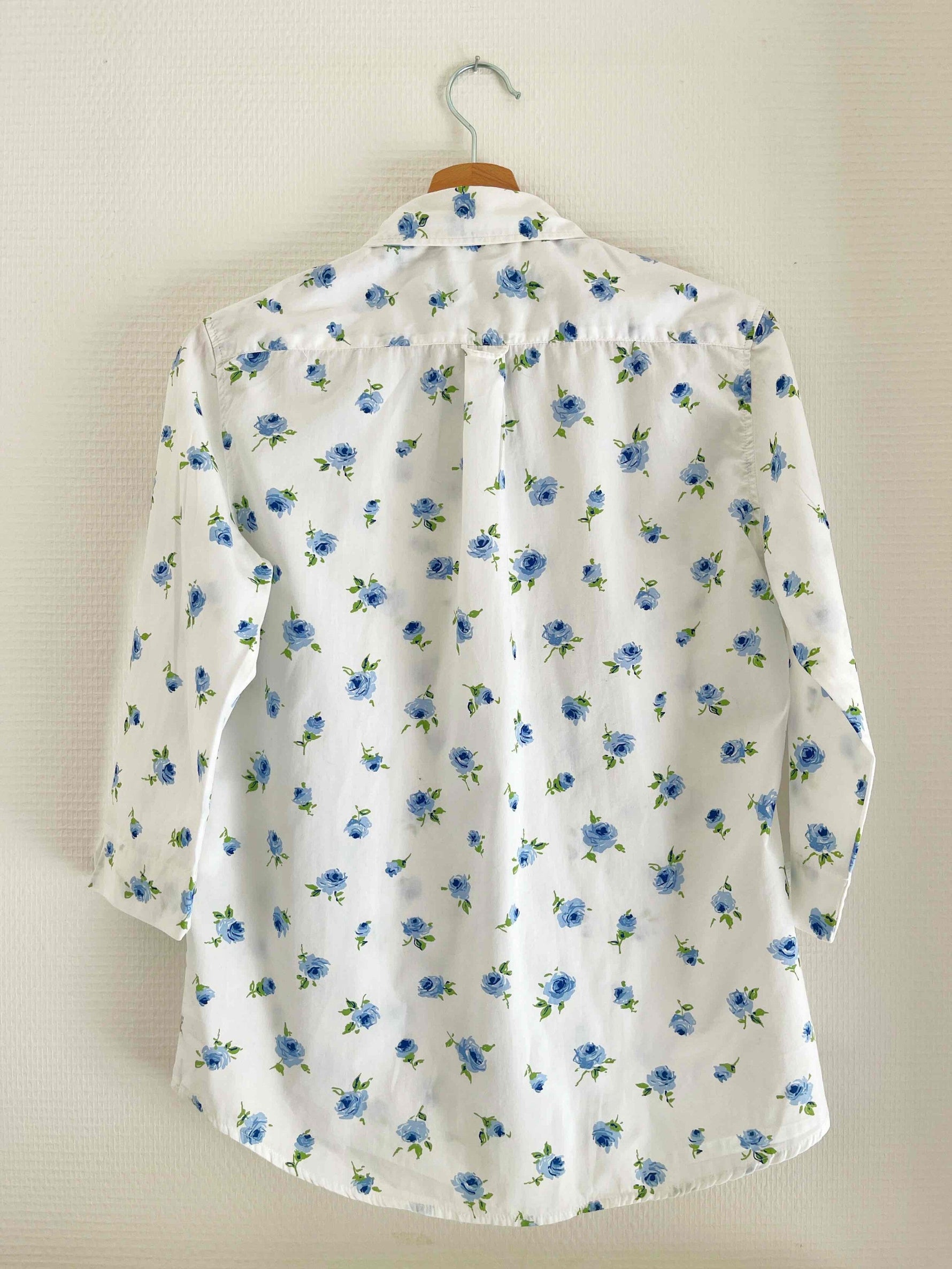 Prix unitaire parChemise à fleurs, 100% coton, manches 3/4, boutonné sur le devant, portée ici sur une T36 pour 1,64 m