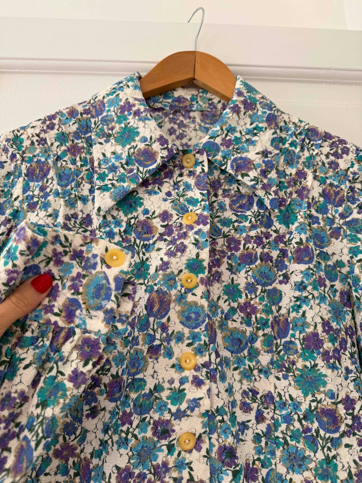 Prix unitaire parChemise à fleurs, Tissu effet dentelle au rendu délicat, boutons au style vintage. Peut se porter de multiples façons : nouée à la taille, rentrée dans un pantalon ou ouverte sur un petit top.