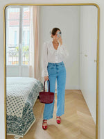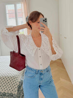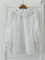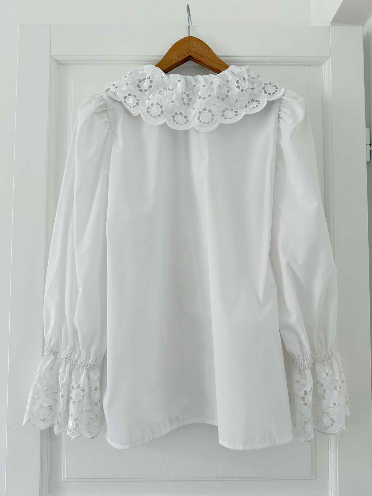 Prix unitaire parChemise autrichienne, magnifique col et poignets en dentelle, boutons argentés, portée ici sur façon oversize sur une T36 pour 1m64