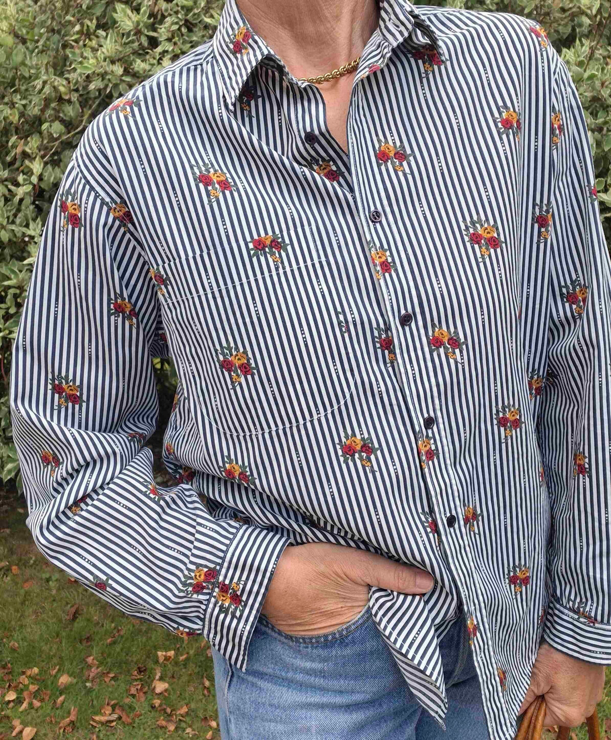Chemise Cacharel à rayures et à fleurs Made in France