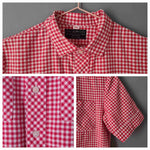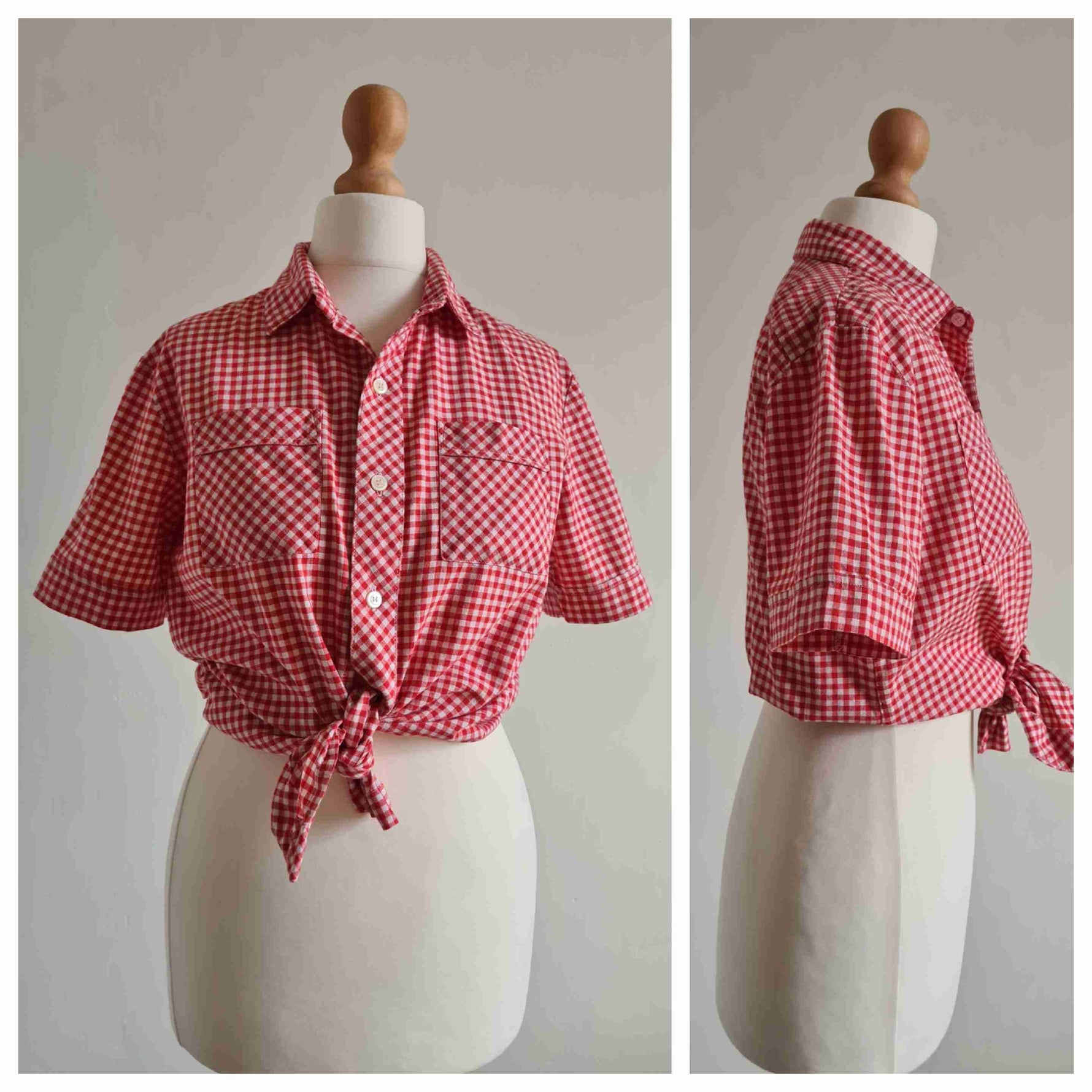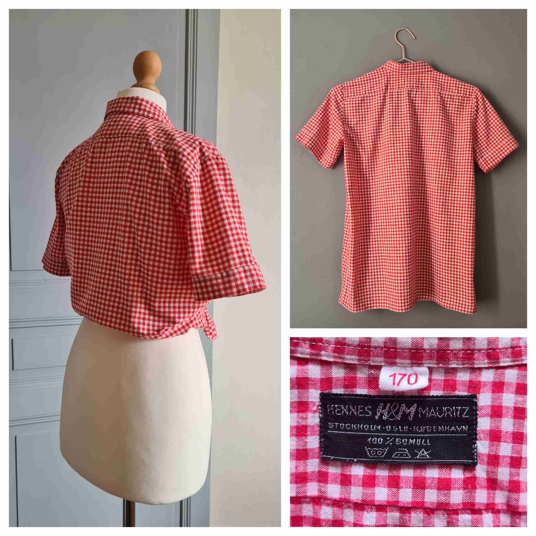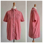 Prix unitaire parChemise en coton vichy rouge et blanc, manches courtes, deux poches plaquées. Hennes & Mauritz.