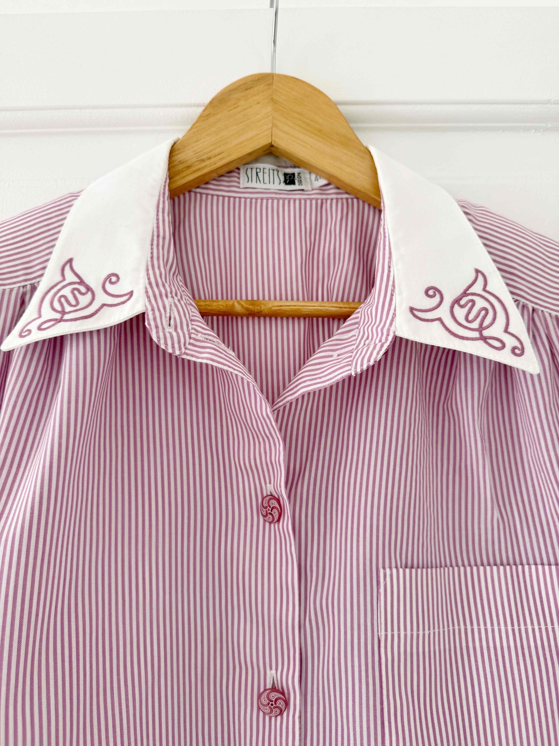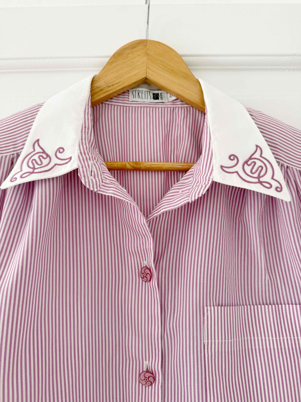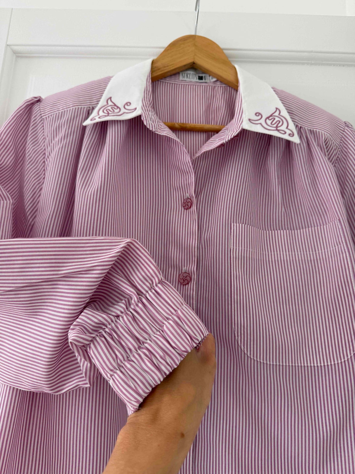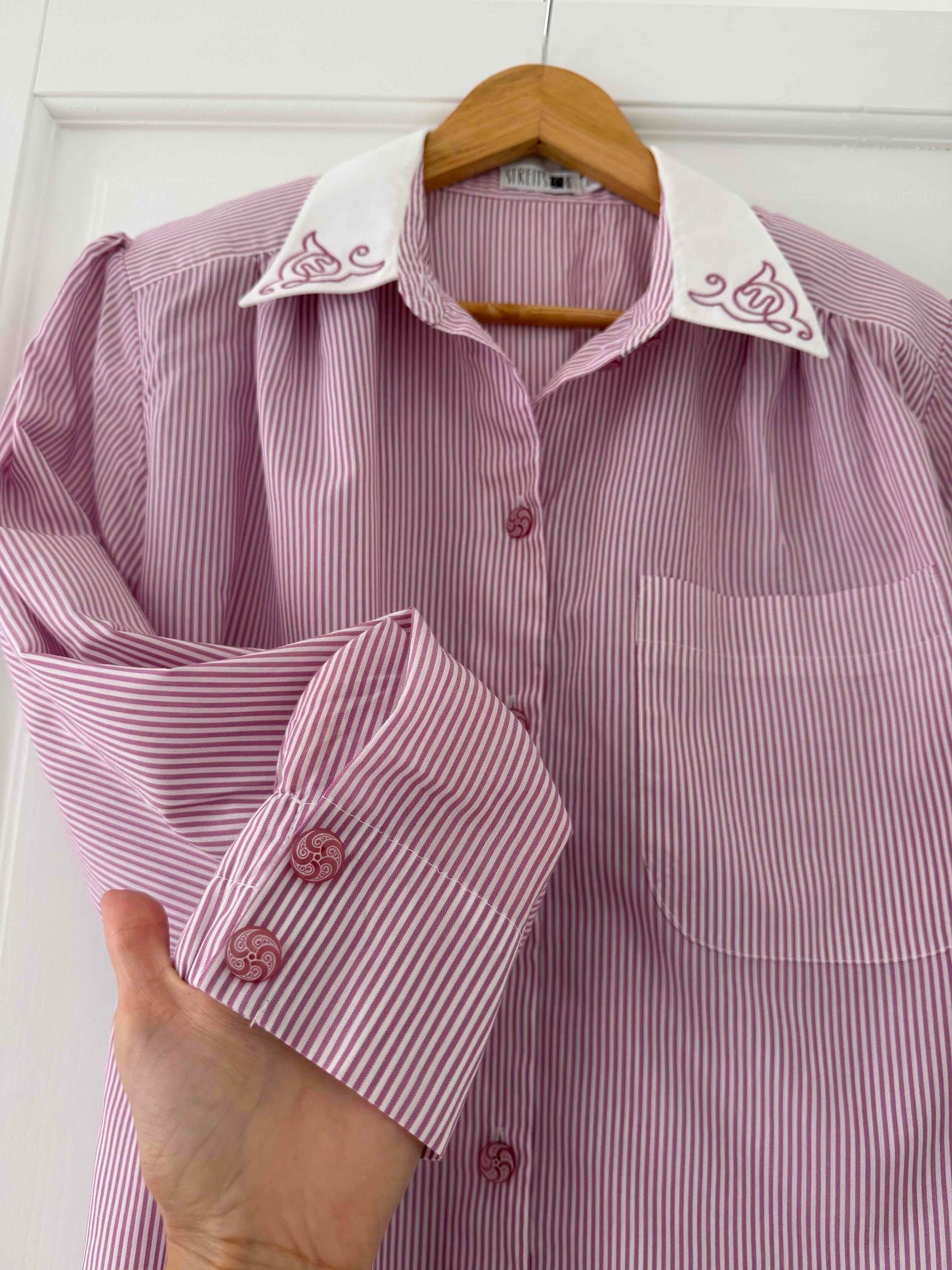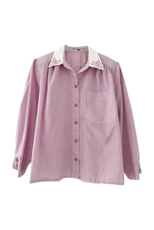 Prix unitaire parChemise rayée avec col blanc orné de broderies originales.