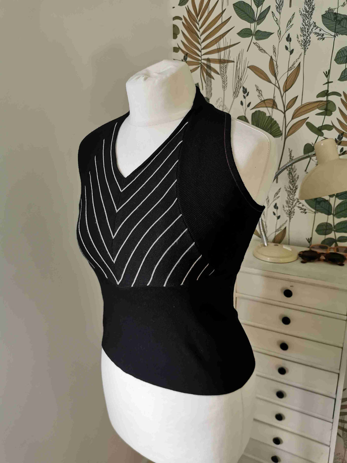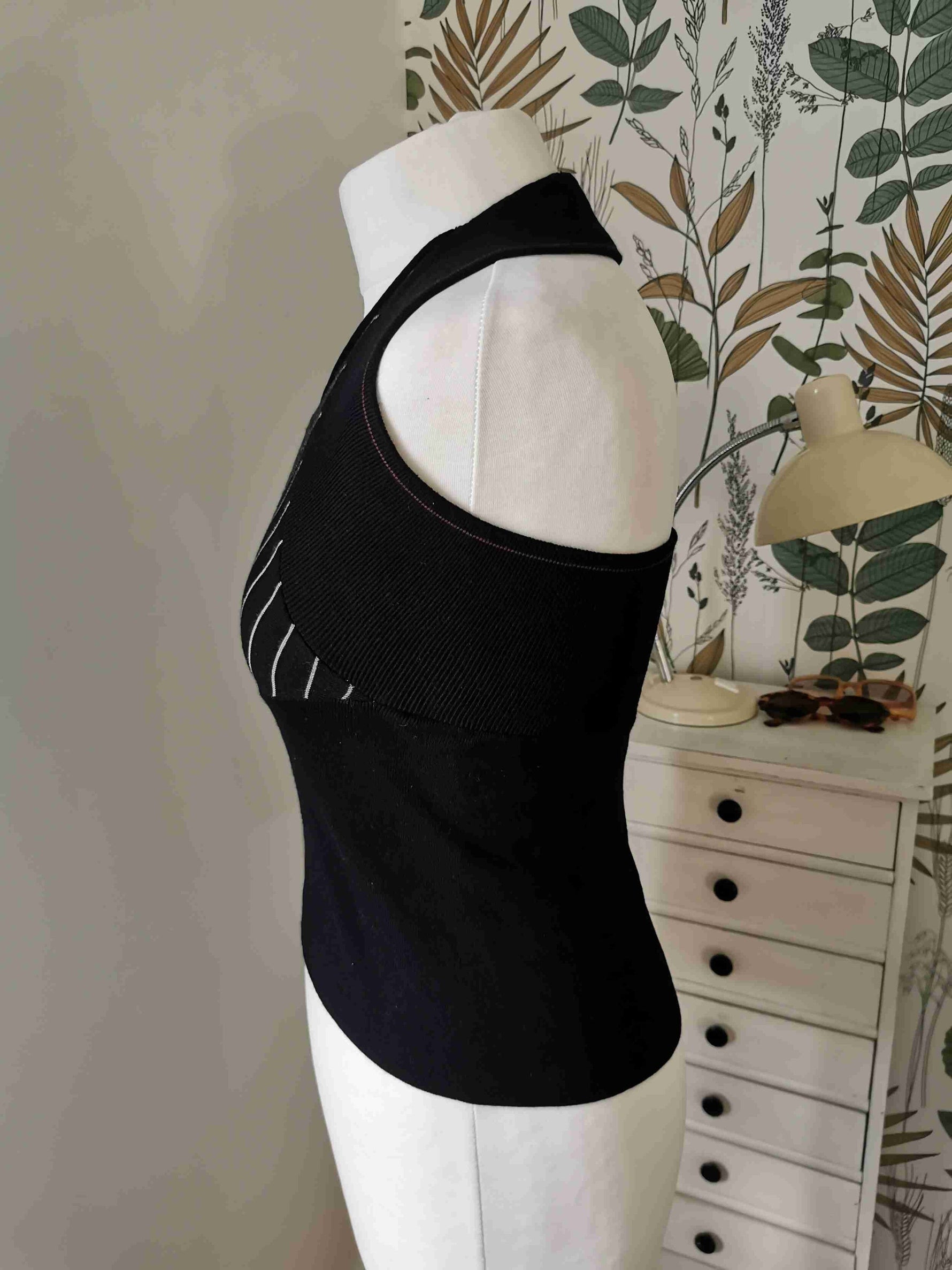 Prix unitaire parDos nu noir rayé beige sur la poitrine