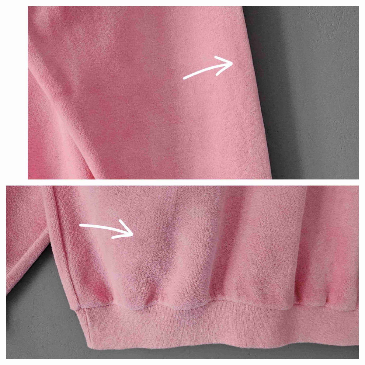Prix unitaire parSweat shirt en éponge rose bonbon, base et poignets élastiqués. Coton 80%. Marque Caroll. Fabriqué en France.