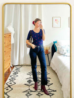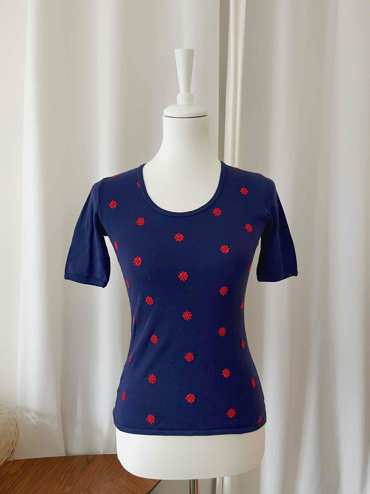 Prix unitaire parT-shirt en coton, made in Austria, petites fleurs rouges, col rond, porté ici sur une T36 pour 1m64
