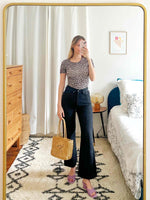 Prix unitaire parTee-shirt léopard, composé d’élasthanne donc stretch, sans transparence, porté ici sur une T36 pour 1,64 m