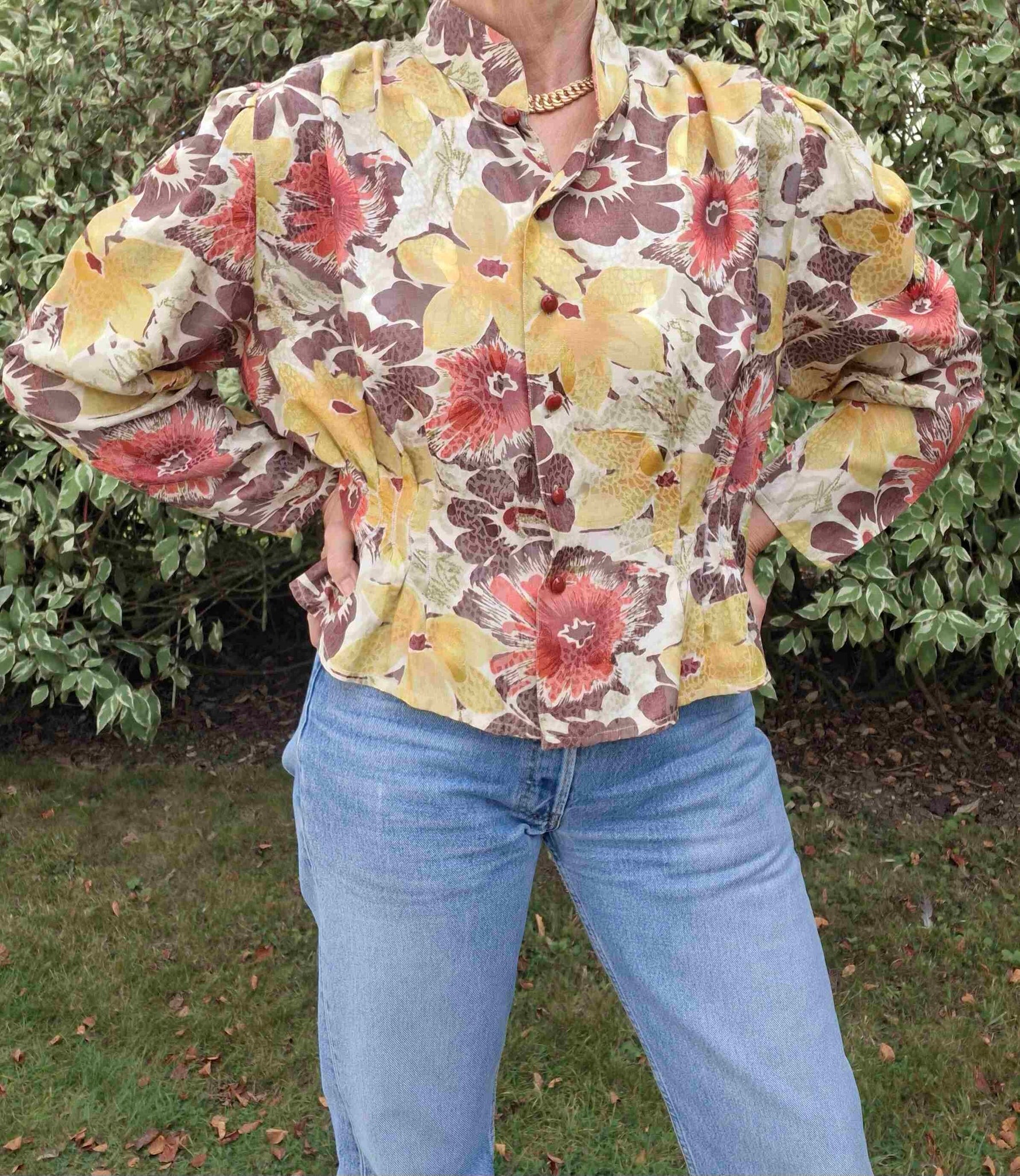 Prix unitaire parTop à fleurs en soie vintage 80's