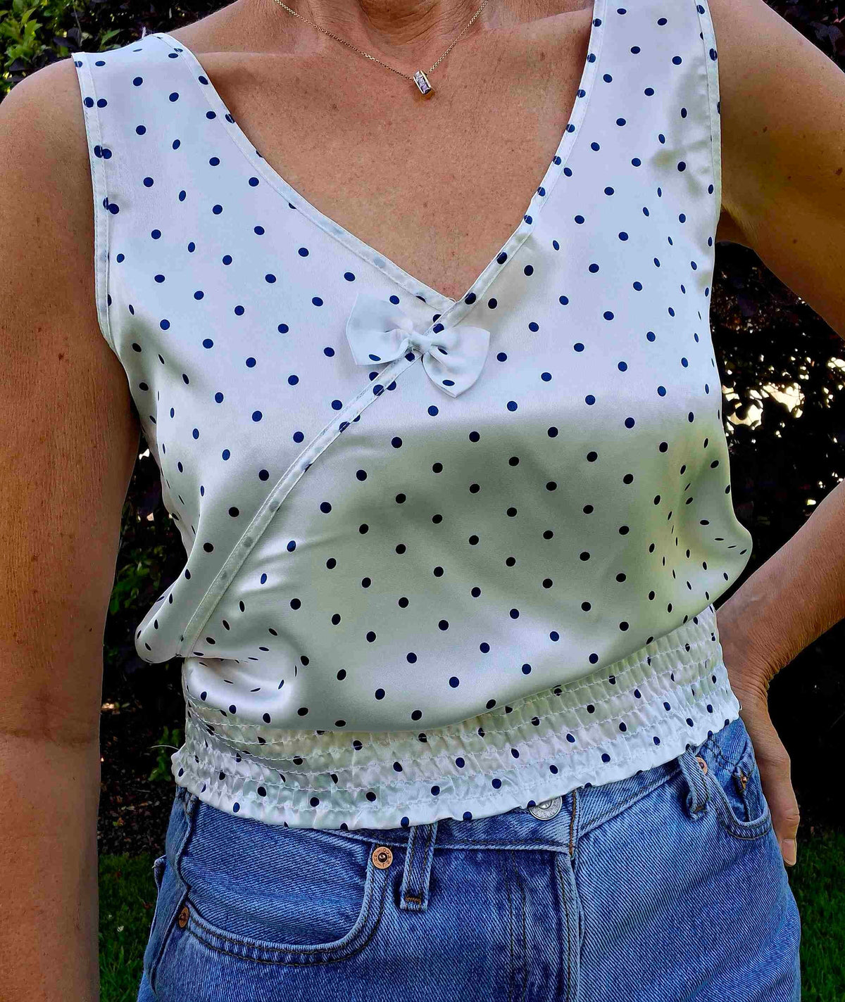 Prix unitaire parTop soyeux à pois vintage 60's Made in France