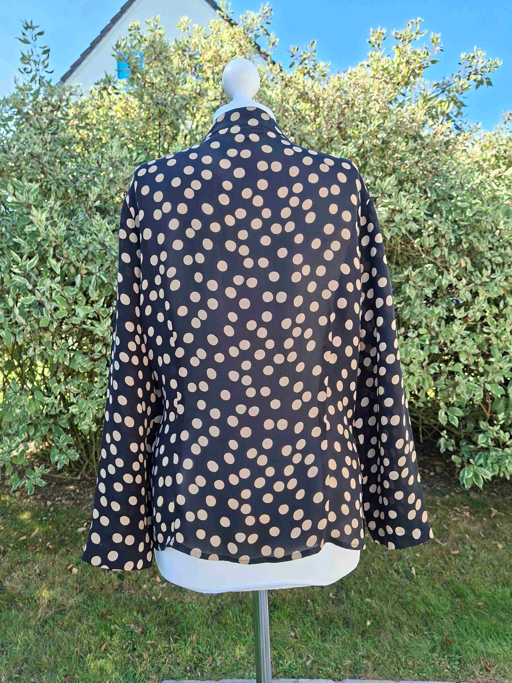Prix unitaire parTop à pois en soie noir et beige