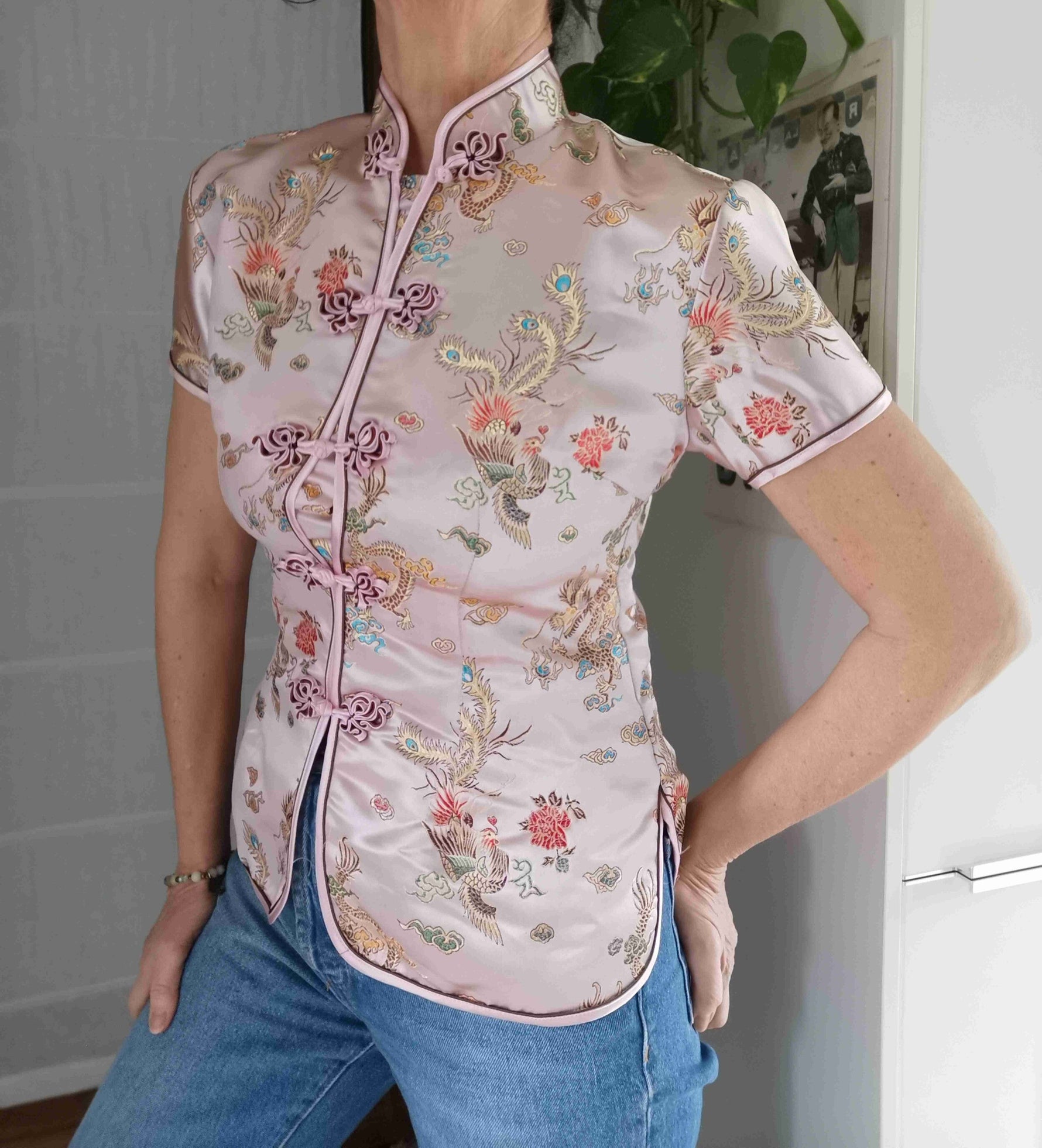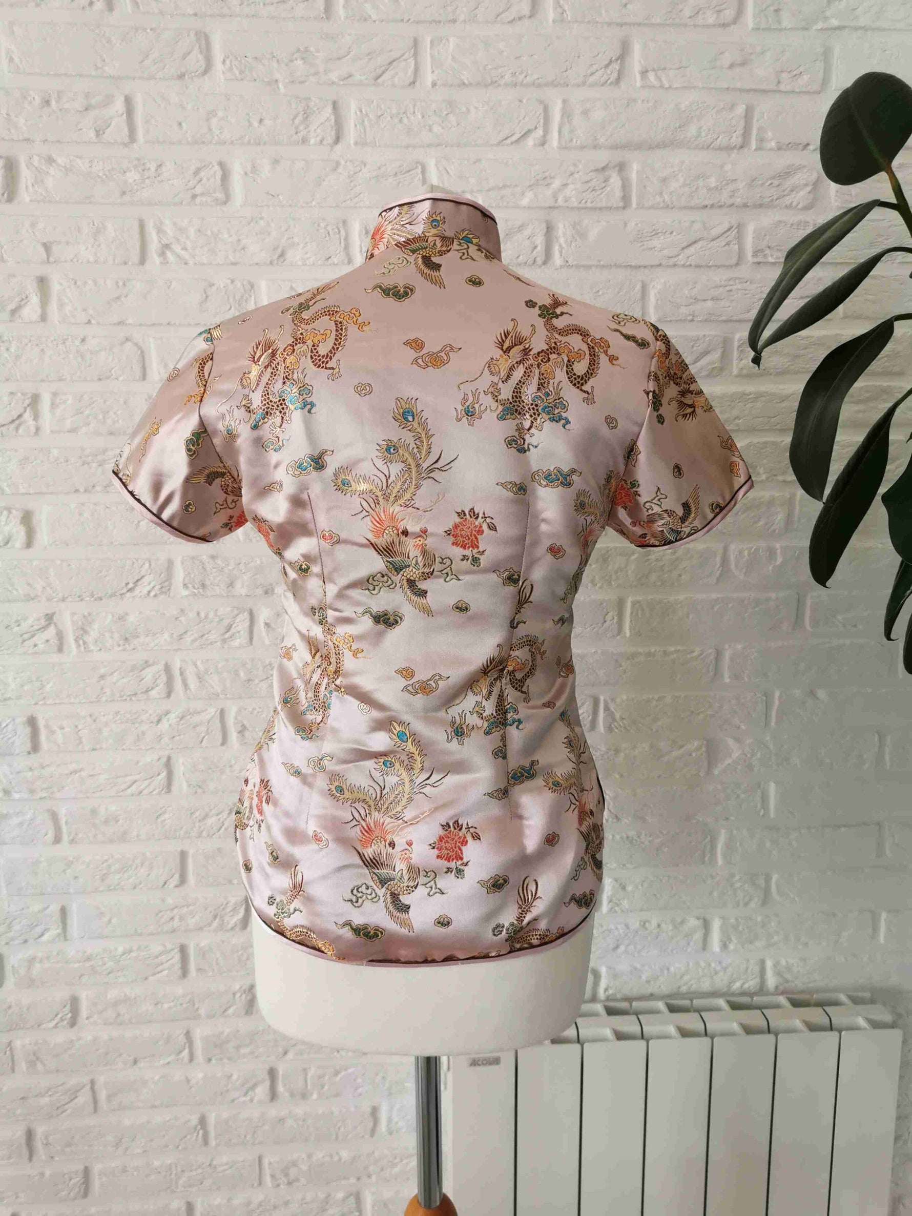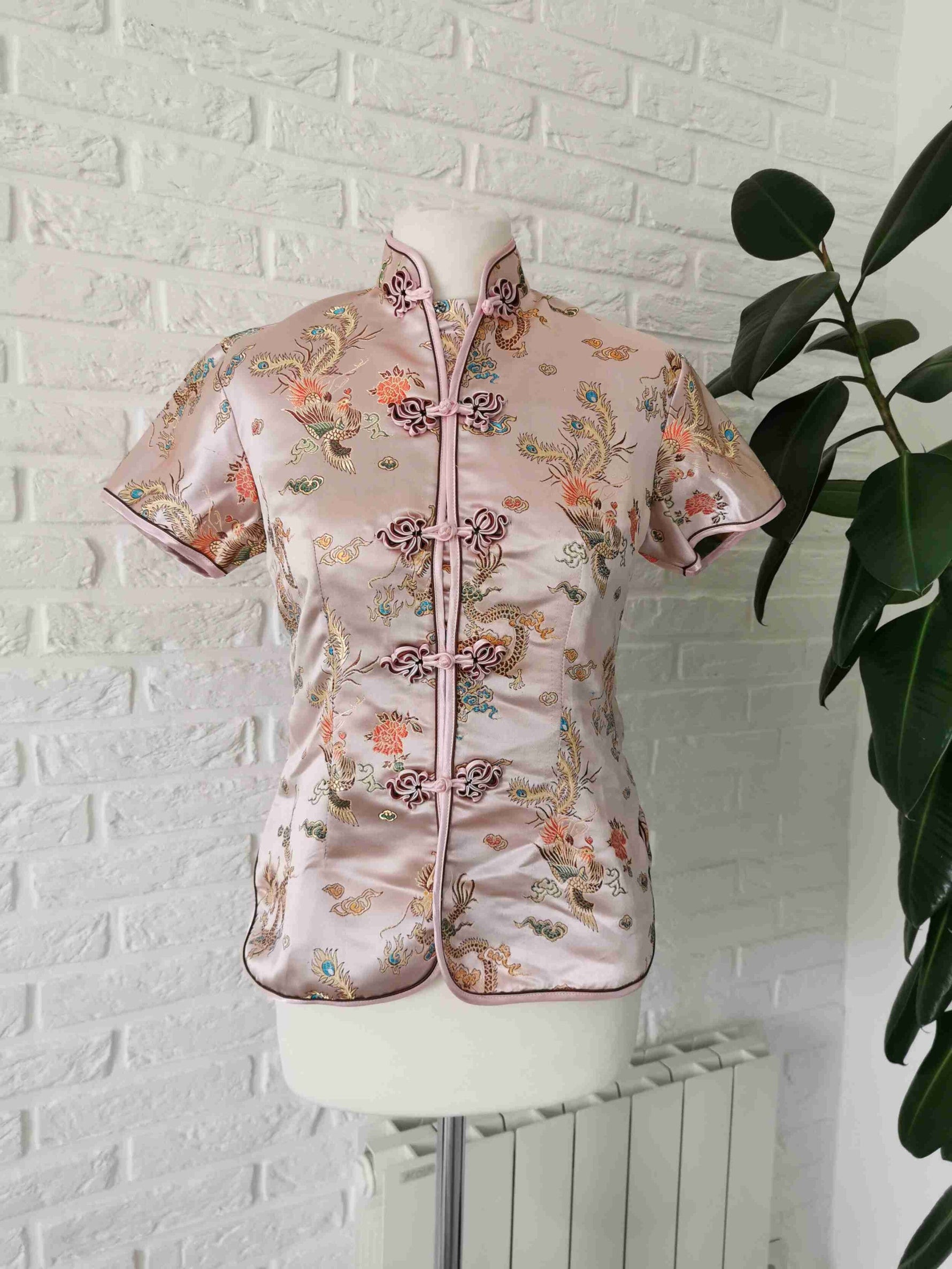 Prix unitaire parTop asiatique en soie rose pastel