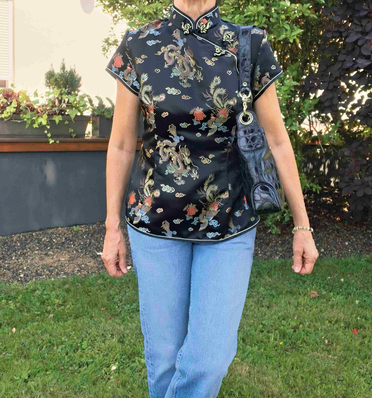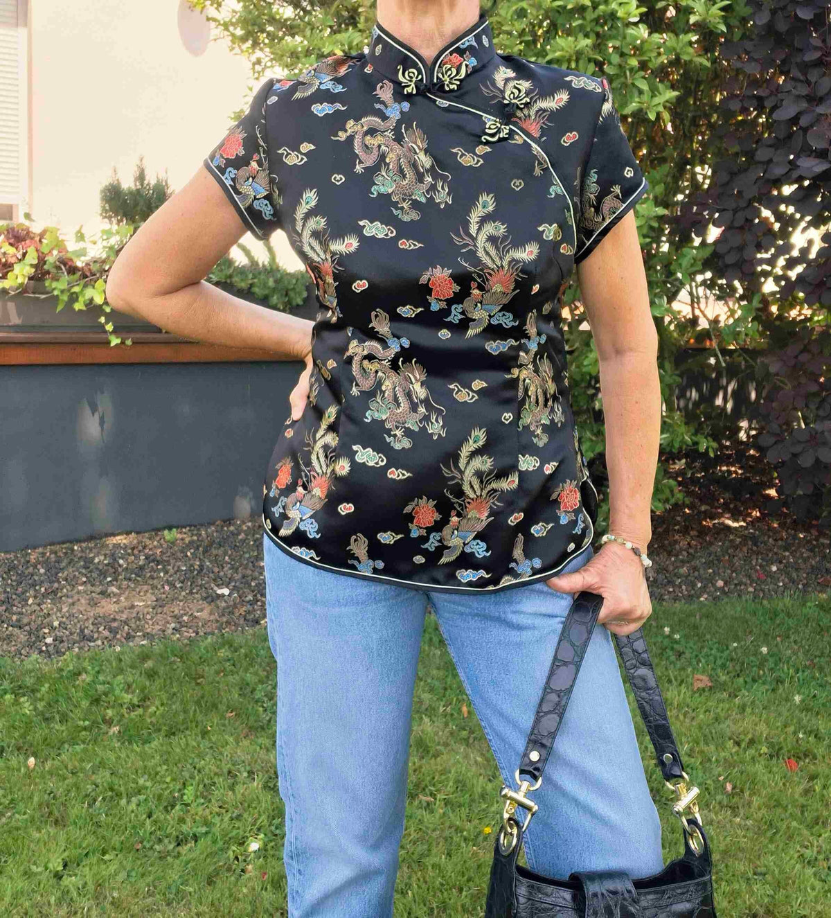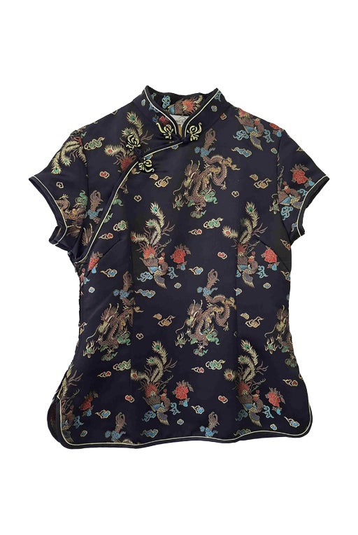 Prix unitaire parTop asiatique noir en soie vintage 90's