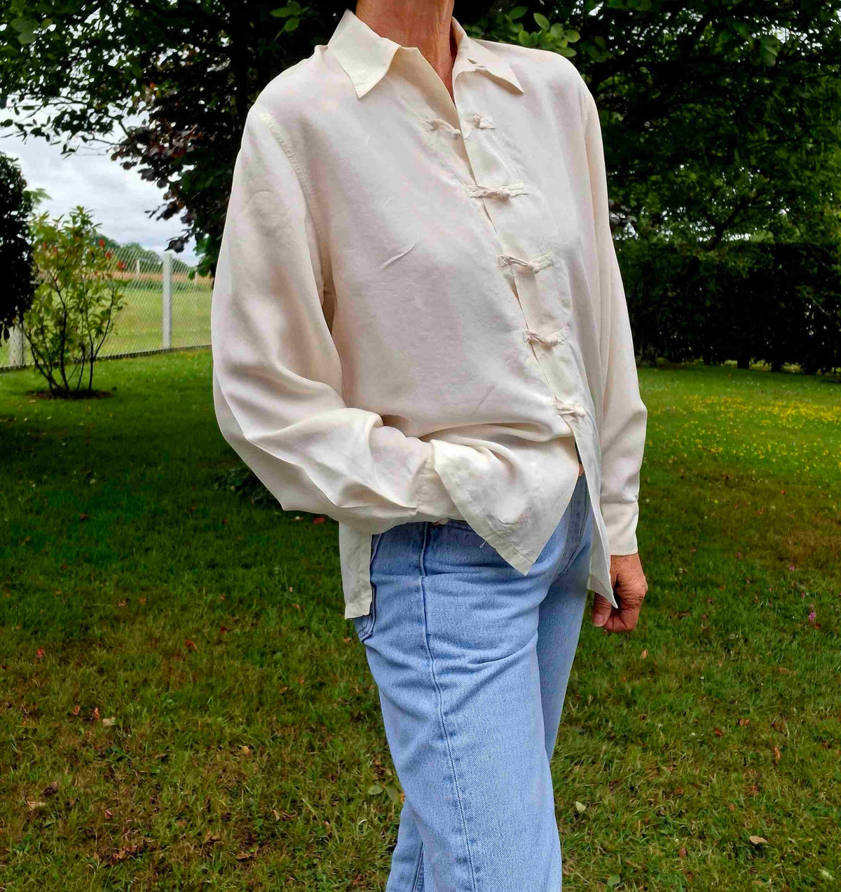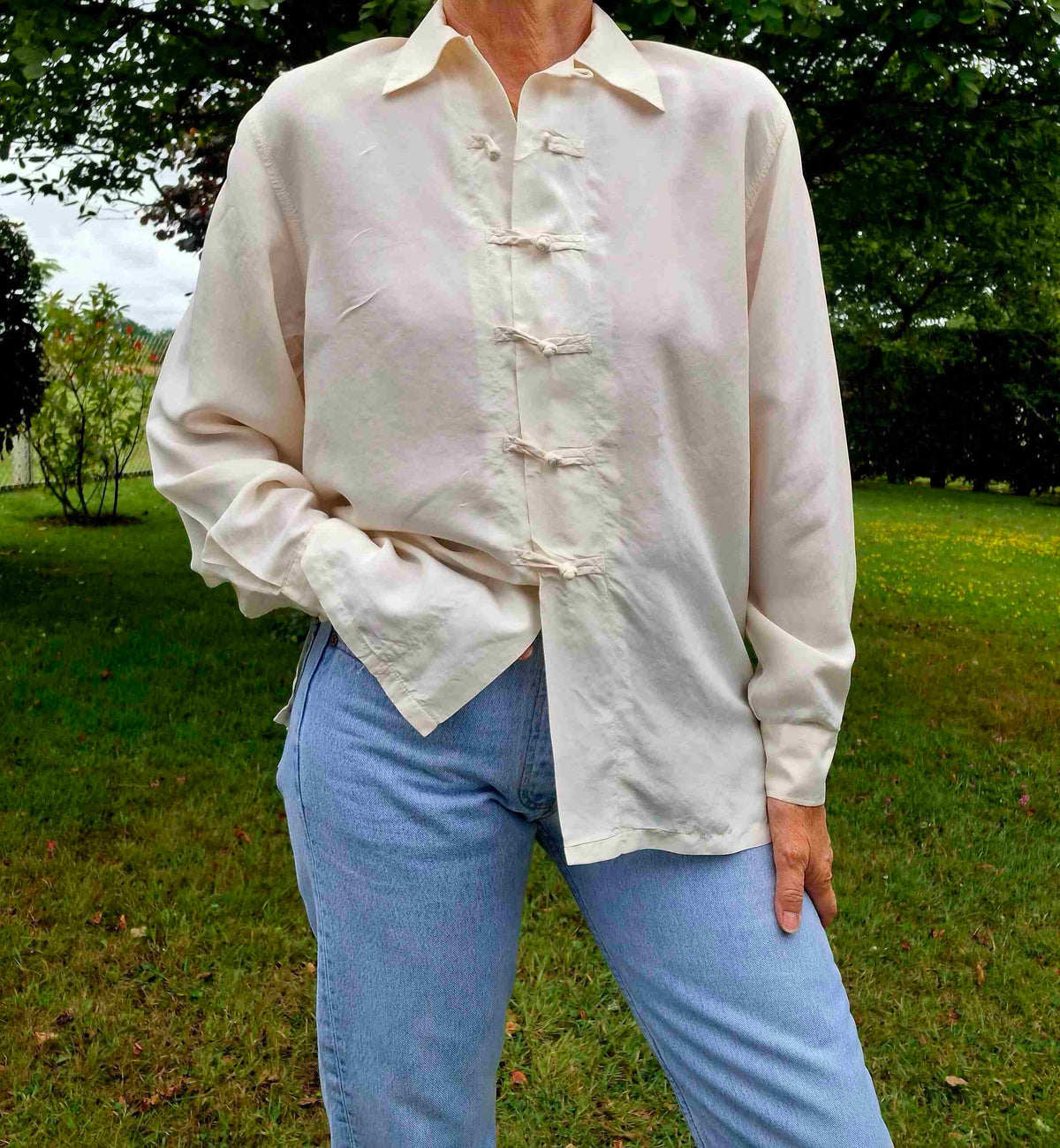 Prix unitaire parTop asiatique en soie écrue Vintage 90's