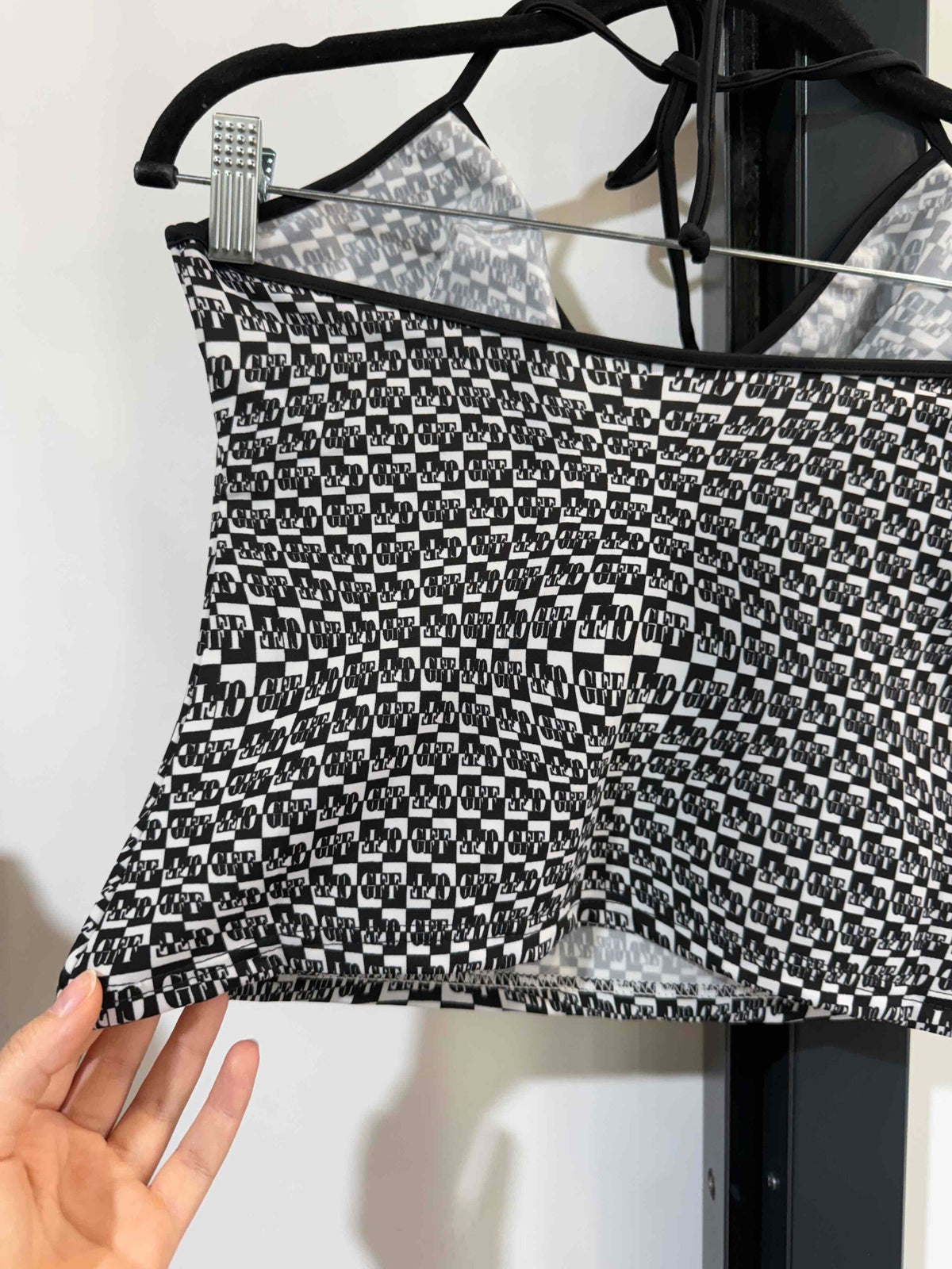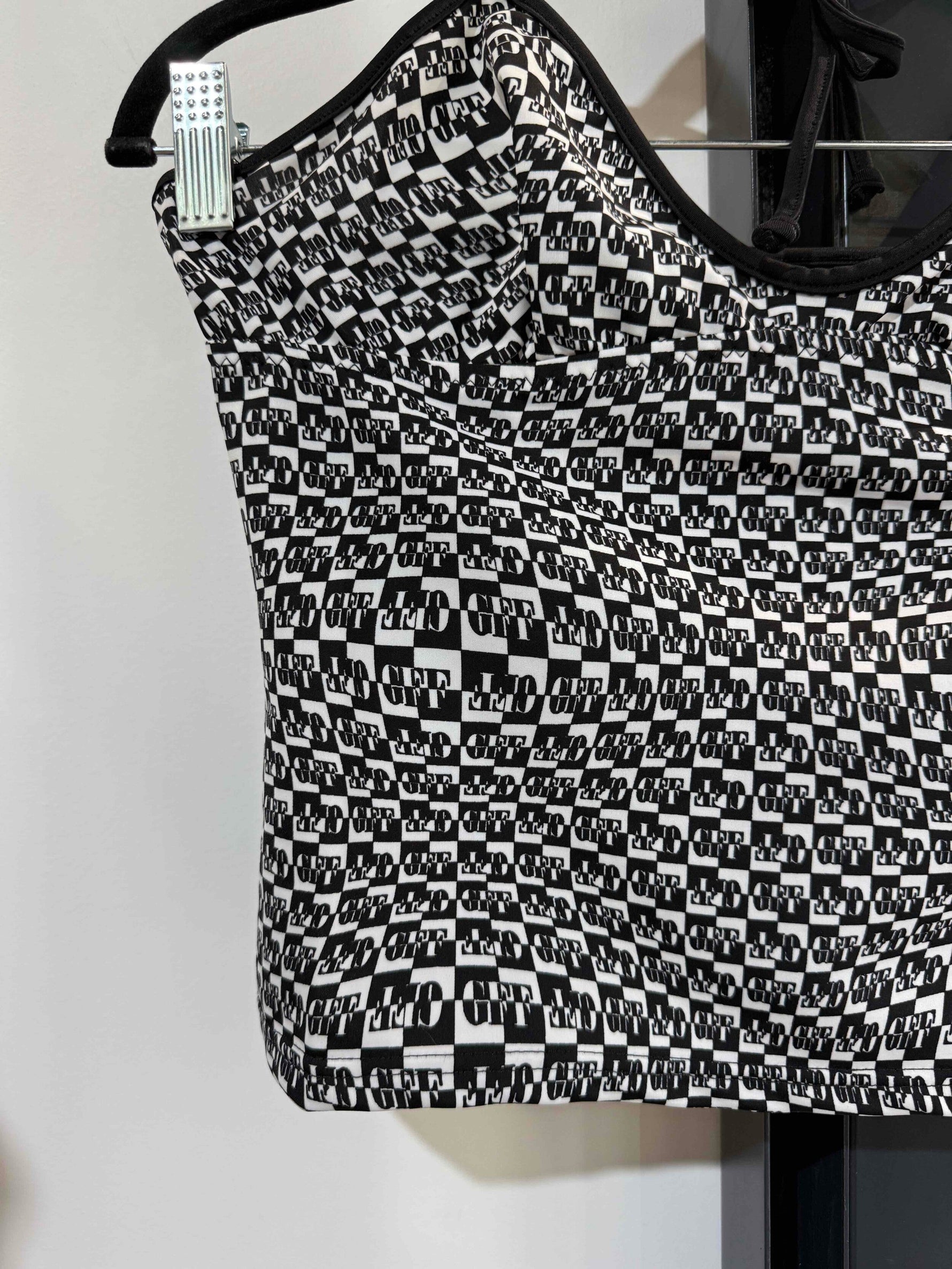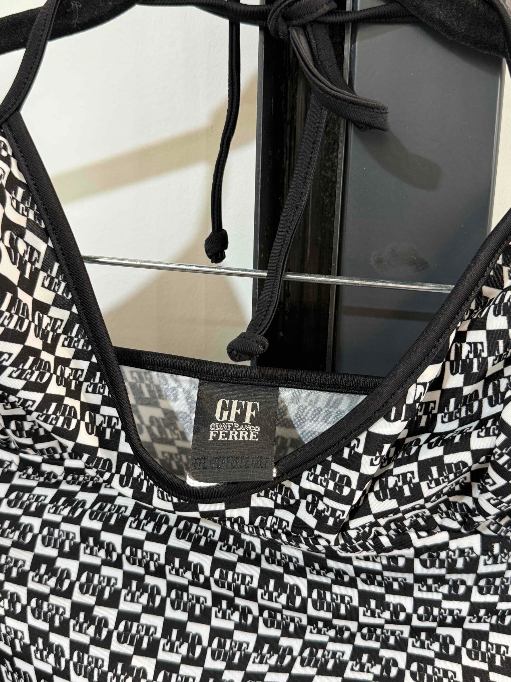 Prix unitaire parTop court dos nu en matière strech de la marque Gianfranco Ferré. Taille 36 S. Lien dans le dos. Motif noir et blanc carré avec un effet 3D.