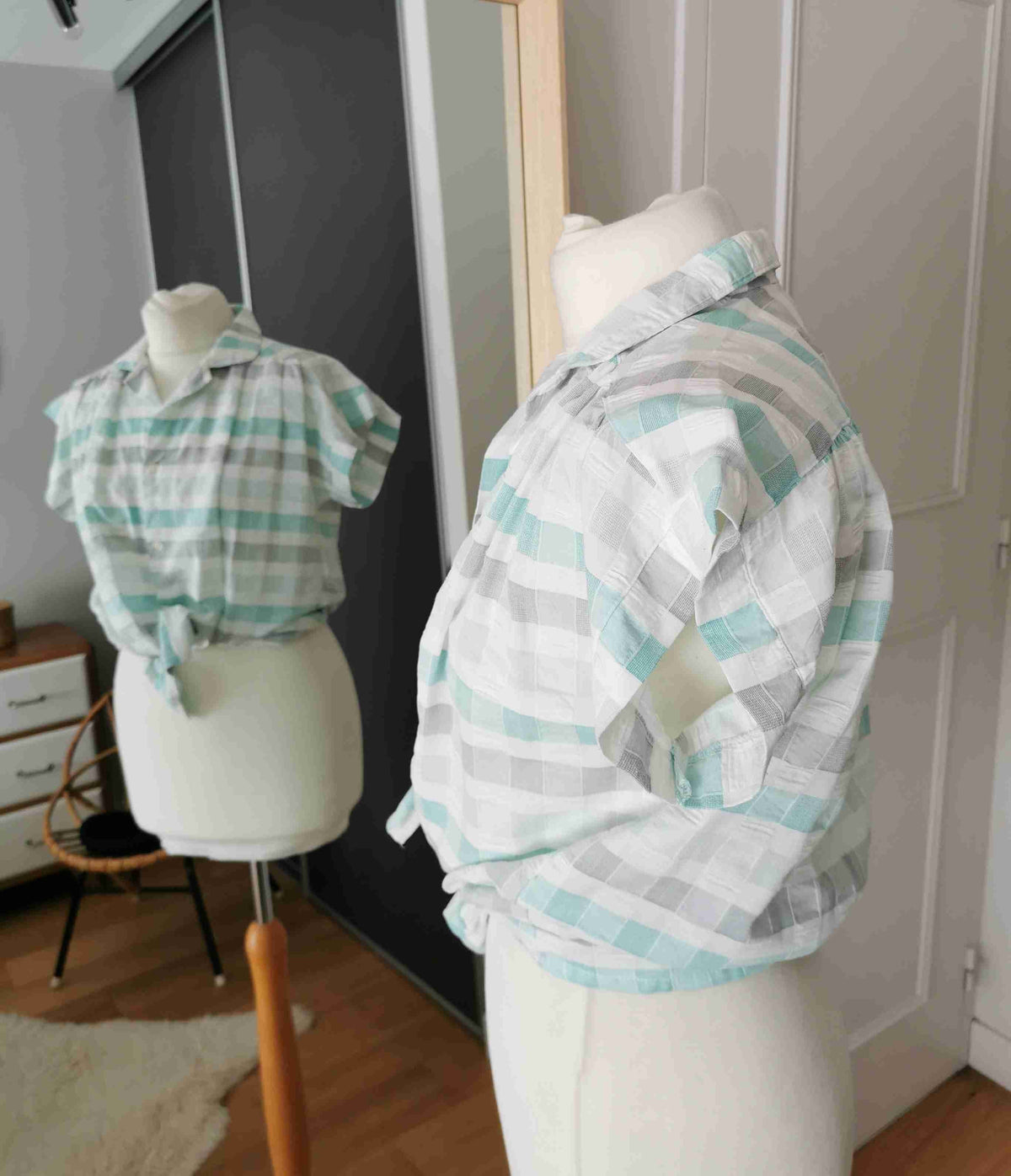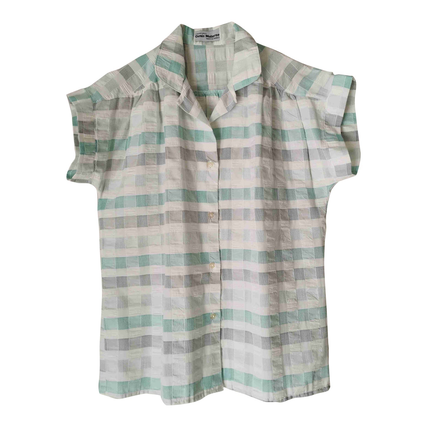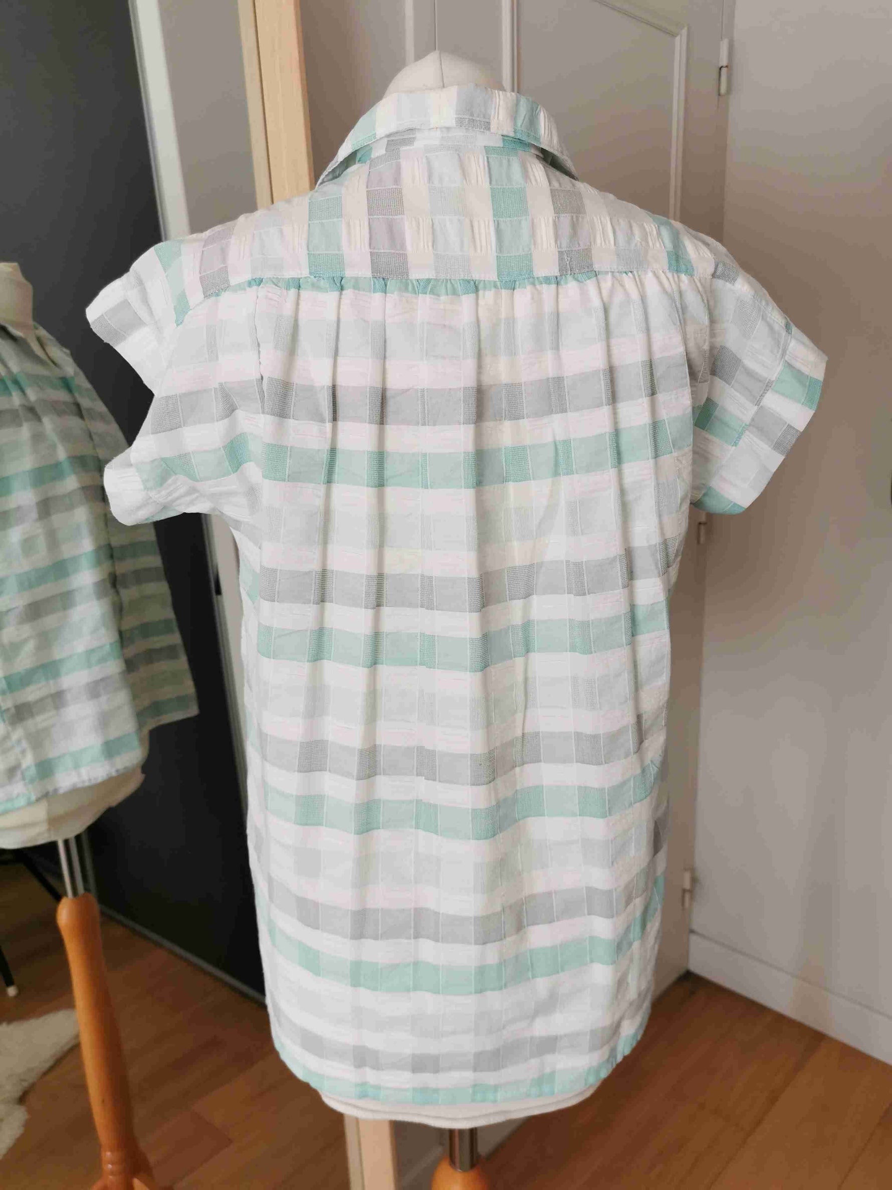 En coton gaufré blanc, gris et vert d'eau.