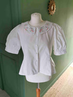 Prix unitaire parTop à col Claudine brodé de petites fleurs