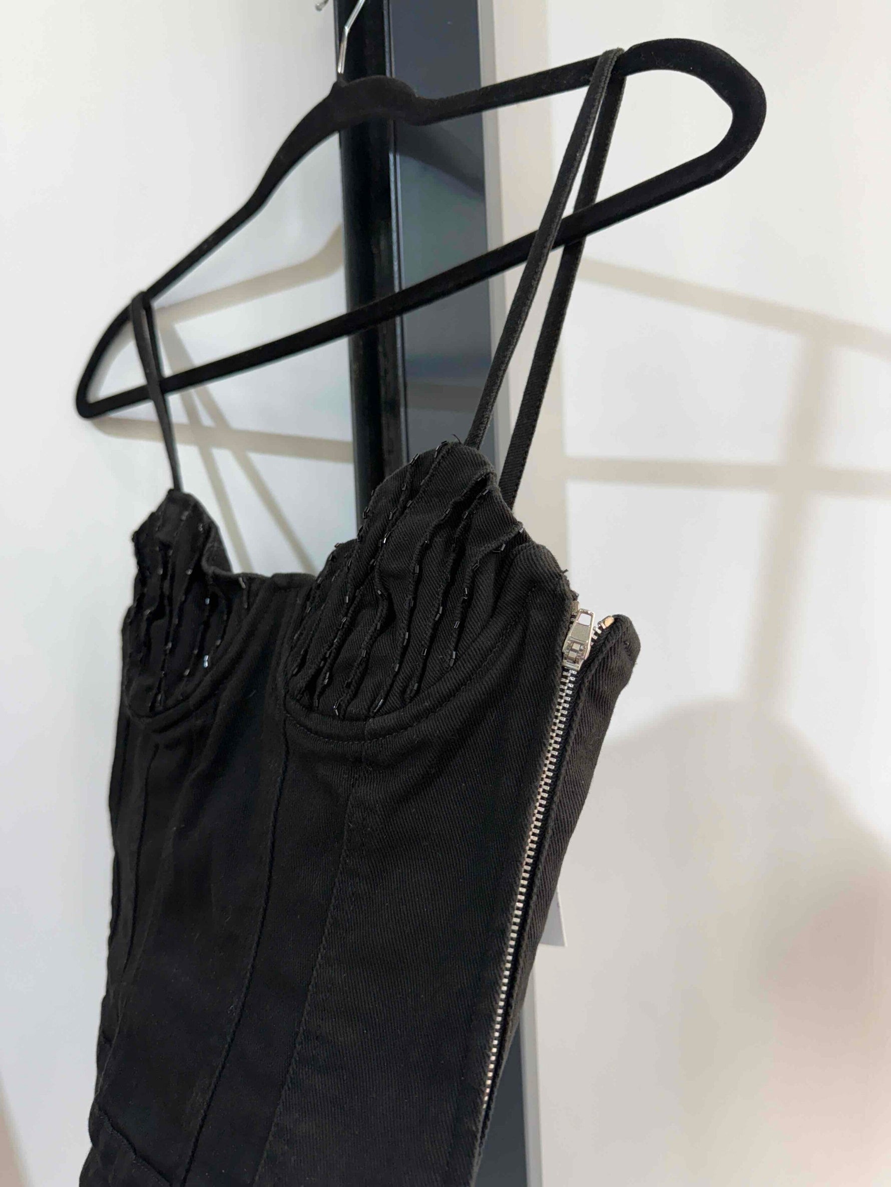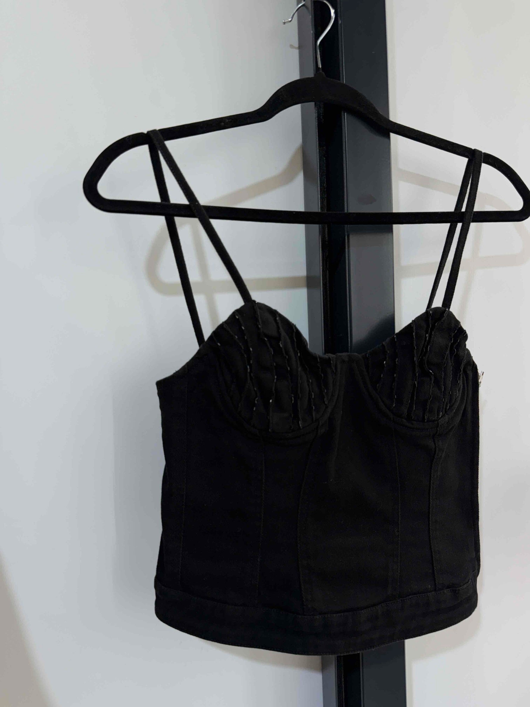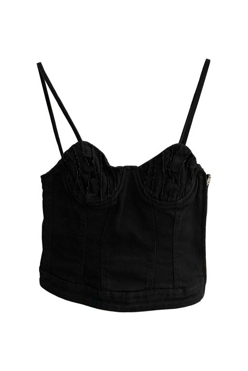 Top court noir en denim jeans de la marque Iceberg, années 2000s. Taille S convient aussi pour un XS. Zip sur le côté. Strass à la poitrine.