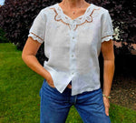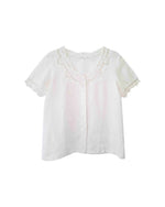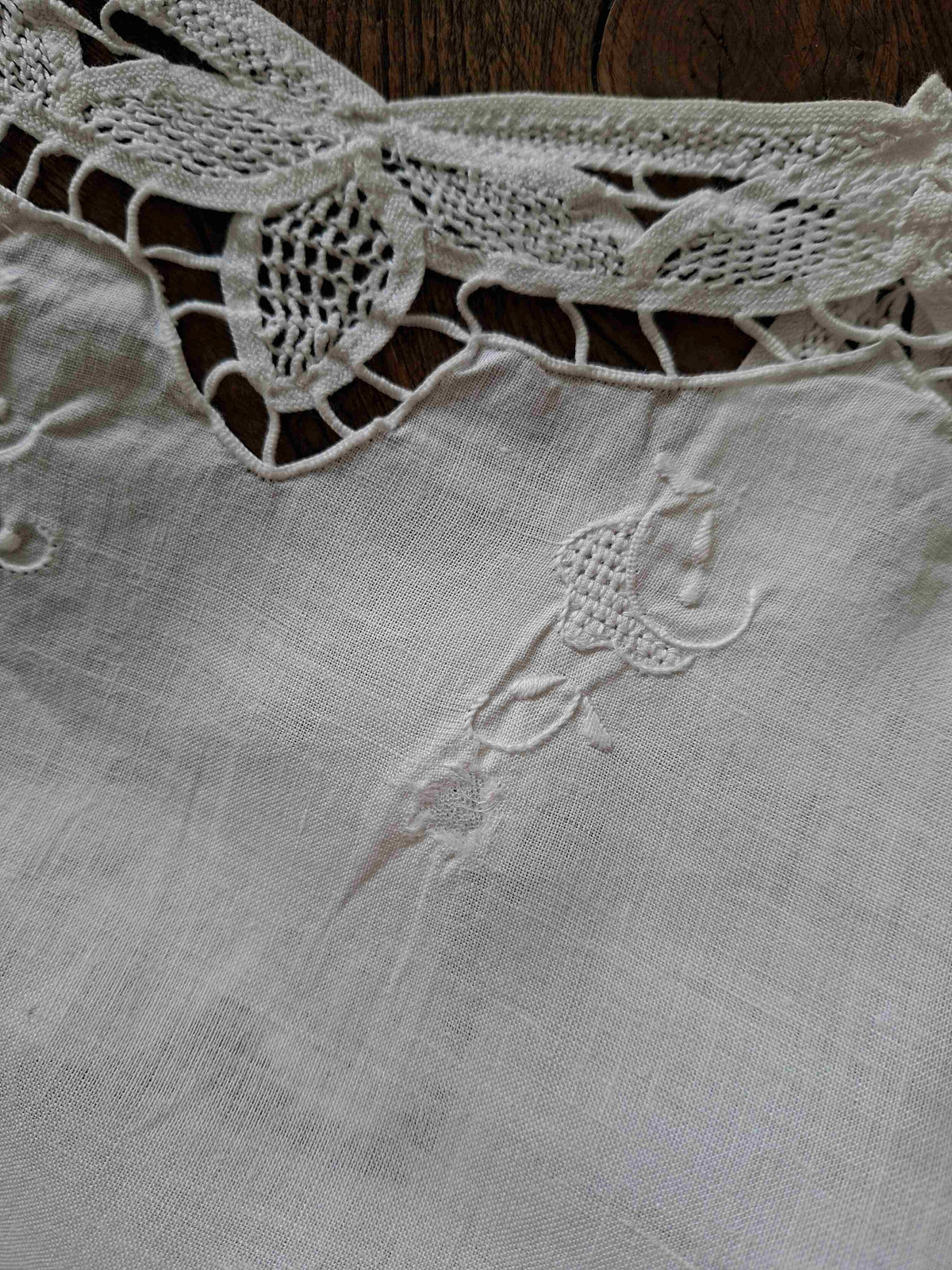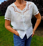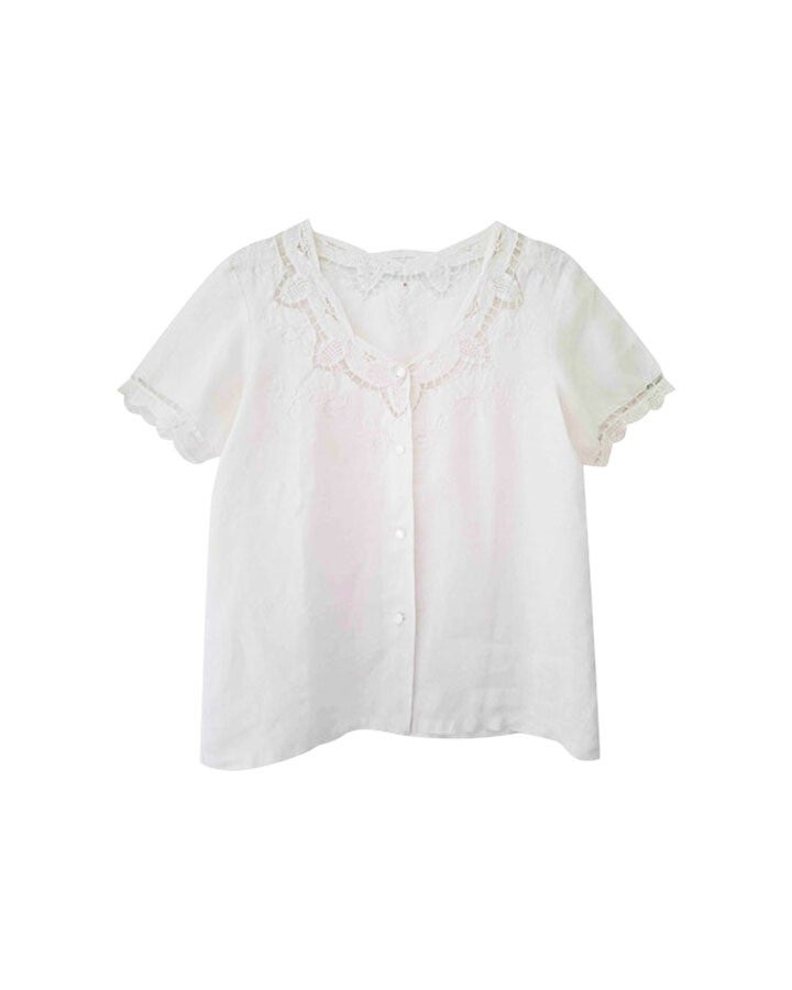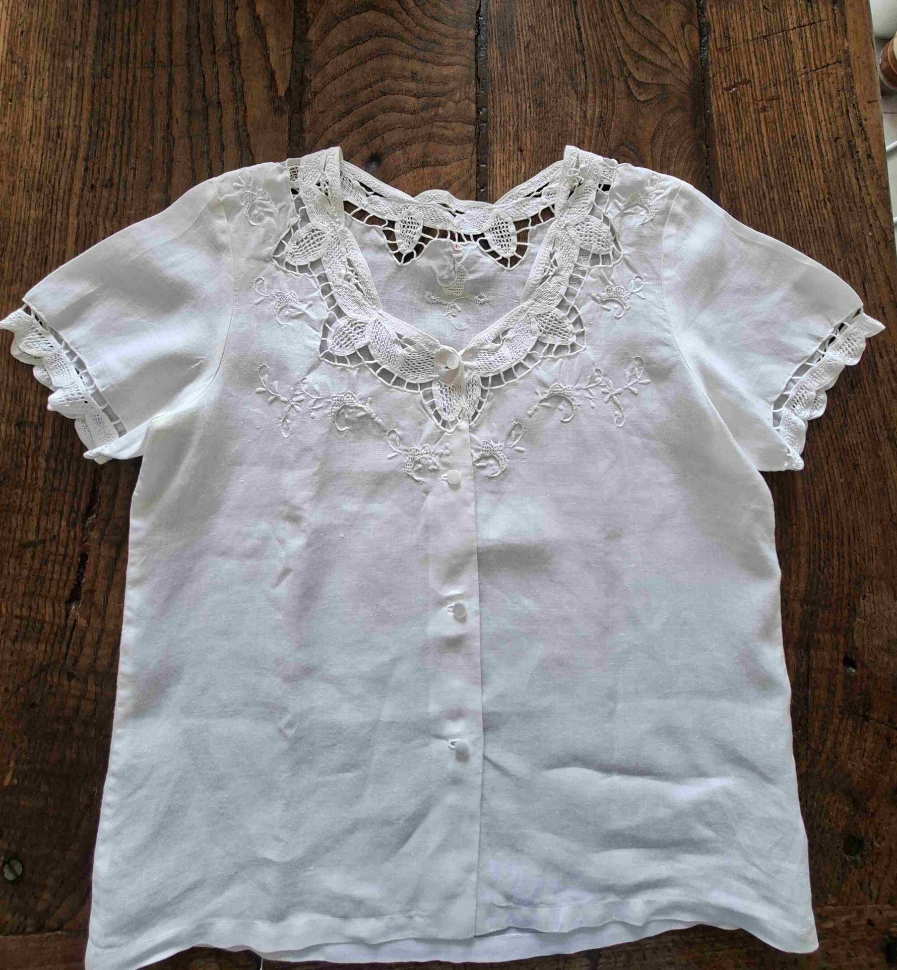 Dentelle sur le haut du top (devant et dos)et sur le bas des manches courtes