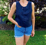 Prix unitaire parTop en lin bleu foncé vintage 90's