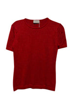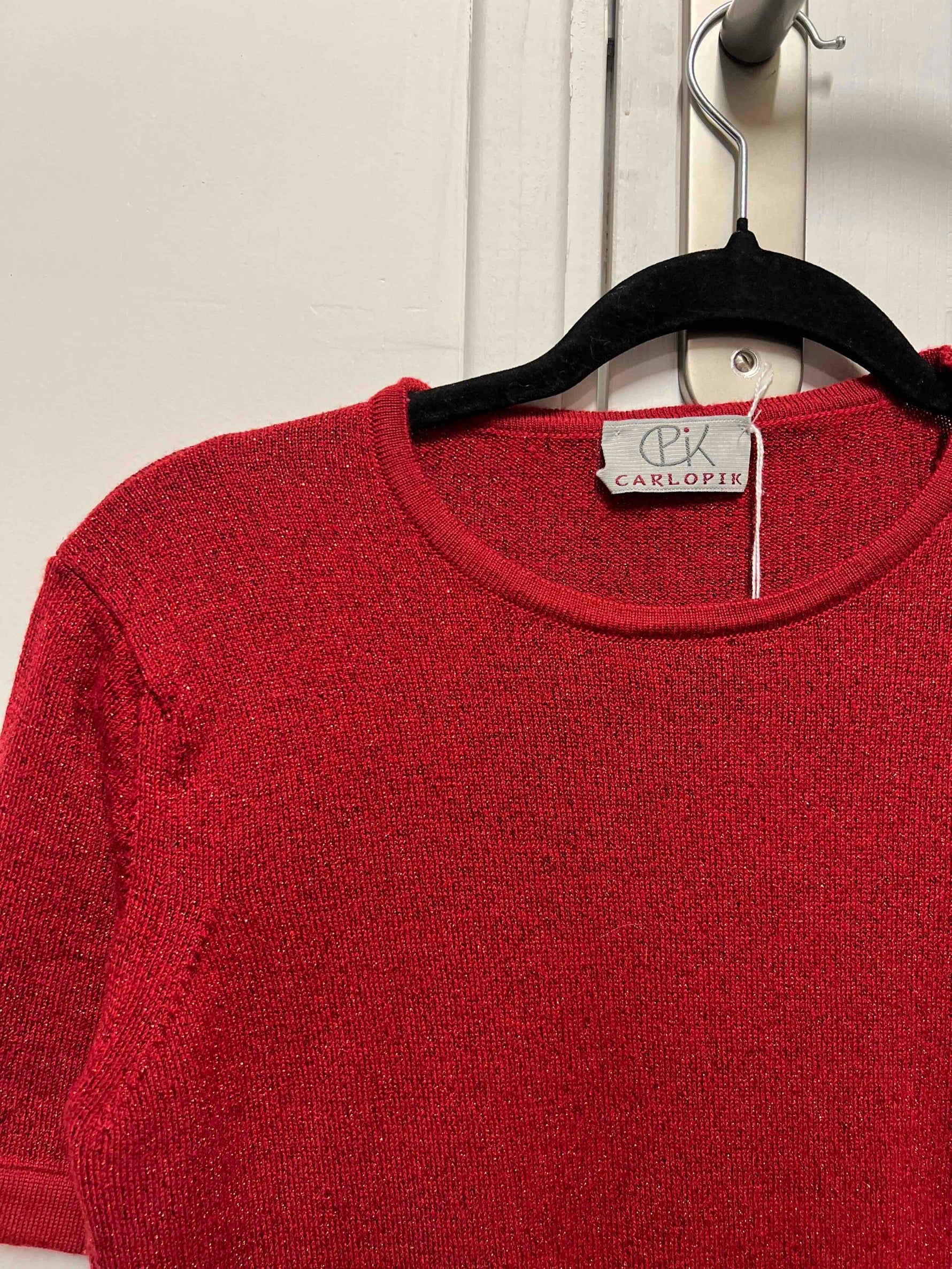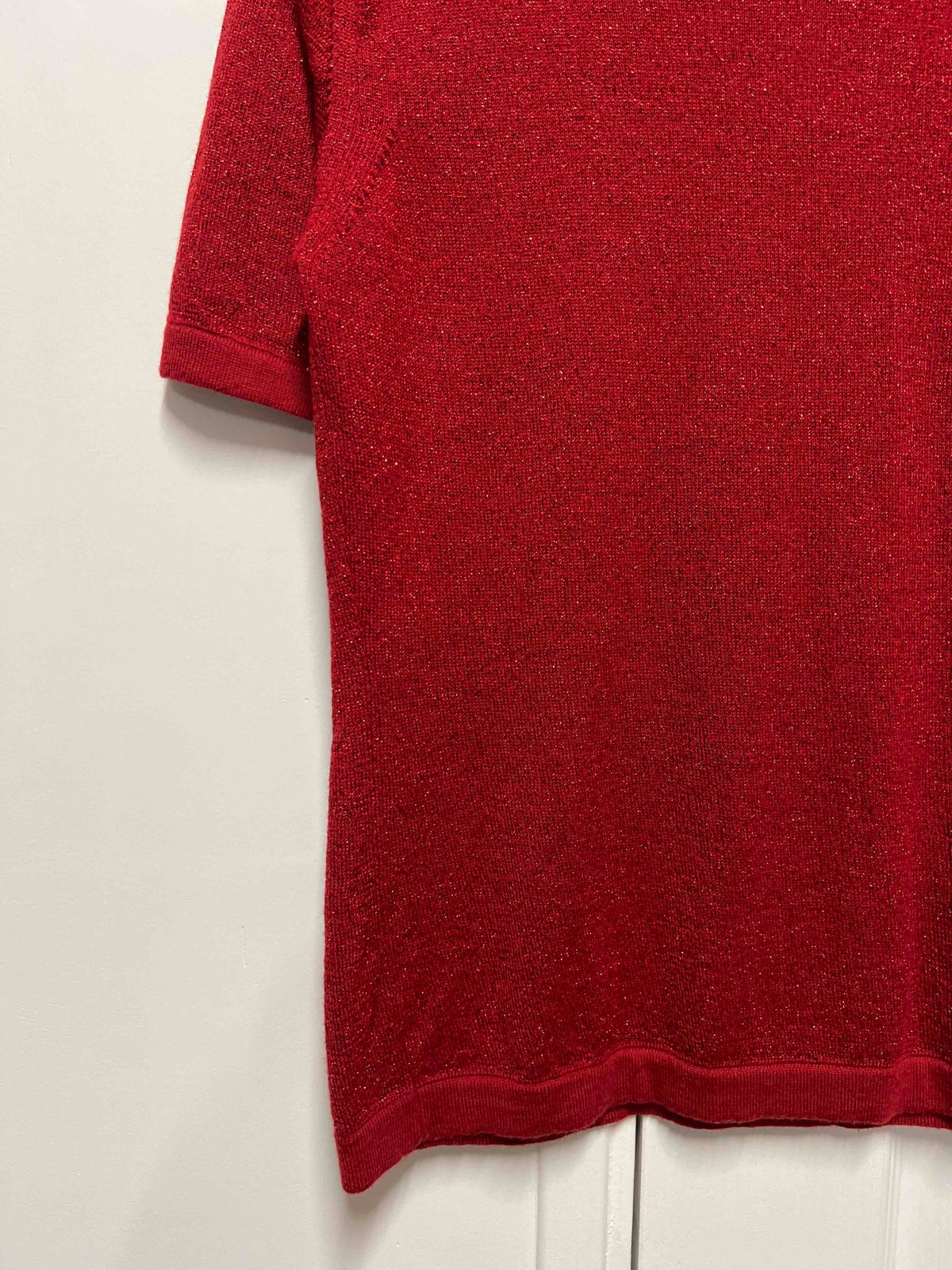 Prix unitaire parTop maille à manches courtes rouge à effet lurex. Coupe droite