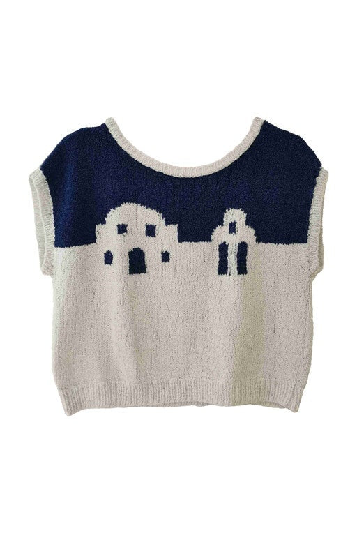 Prix unitaire parTop en mailles de coton blanc et bleu