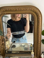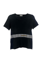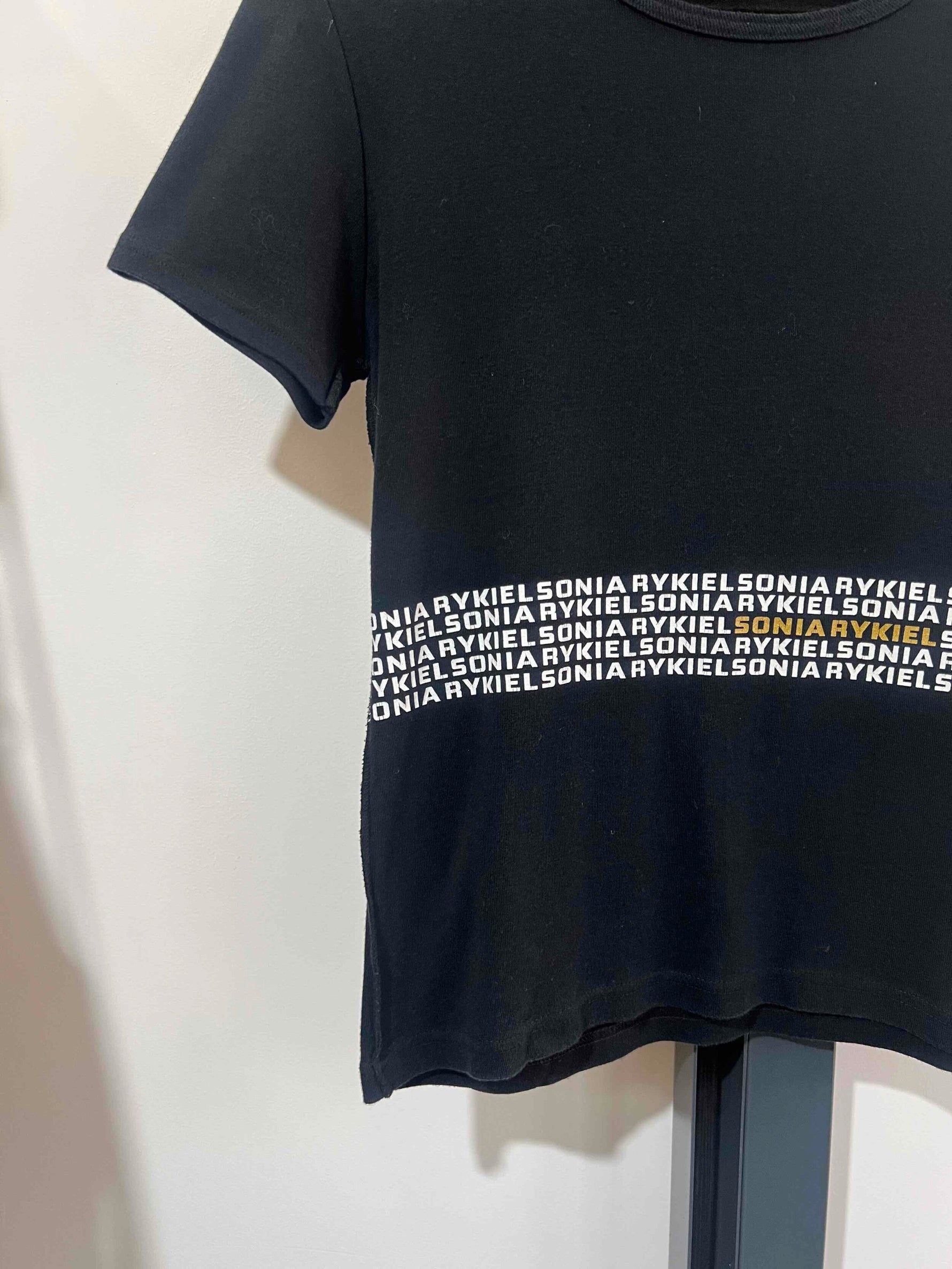 Prix unitaire parT-shirt à manches courtes de la marque Sonia Rykiel, col rond. Étiquette de composition coupée. Noir avec inscriptions au non de la marque blanc et doré.