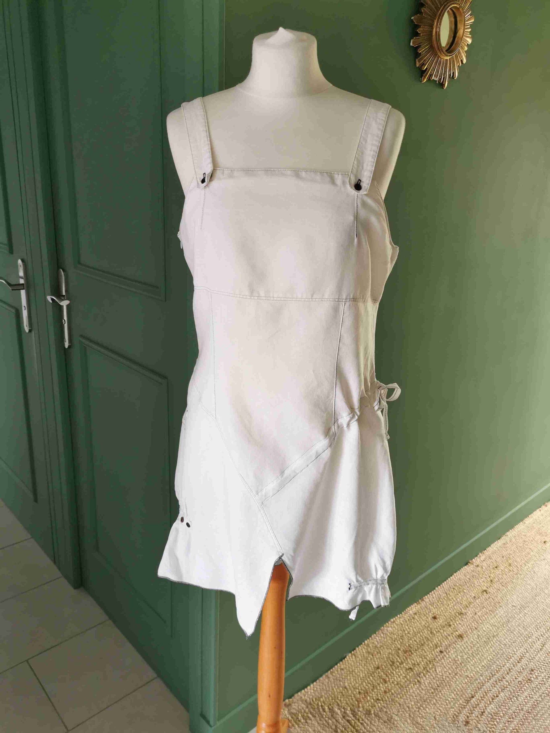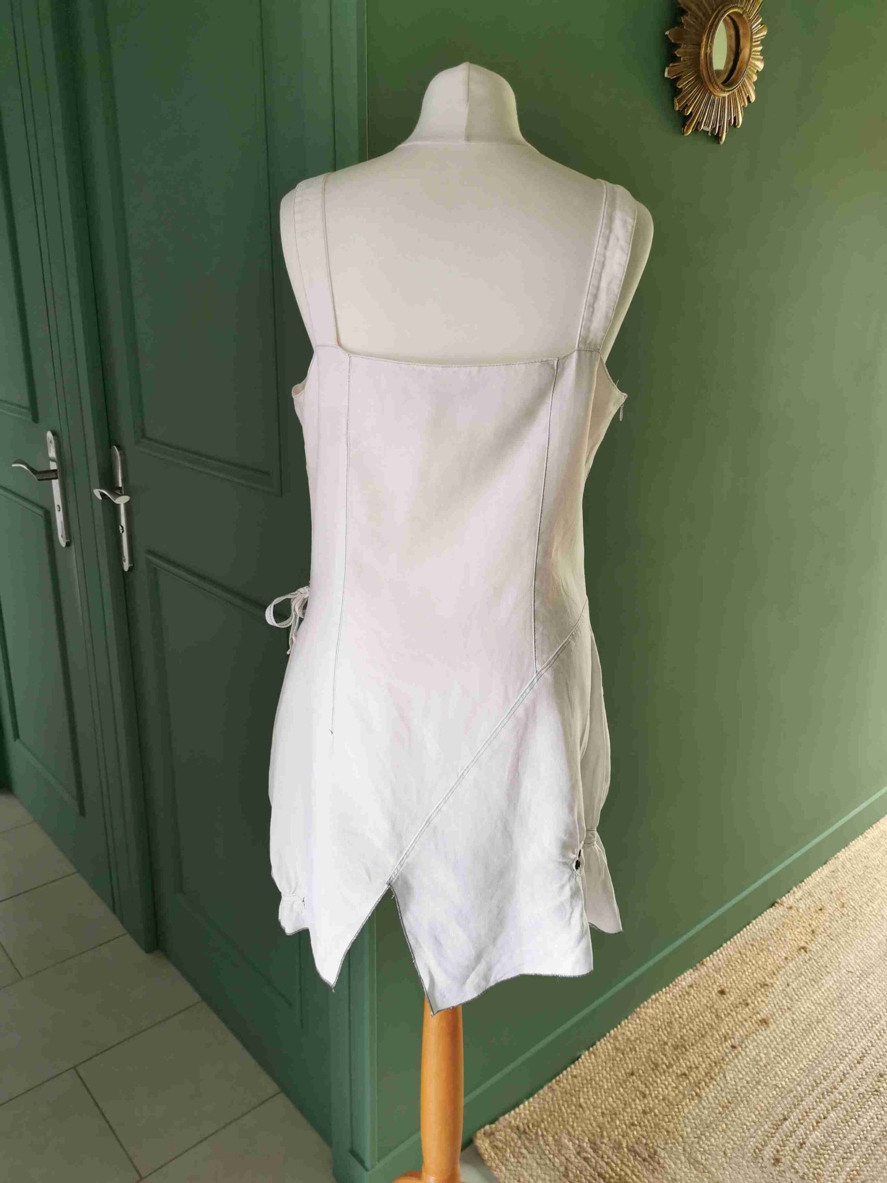 Composé d'une robe à bretelles avec base asymétrique et volant
