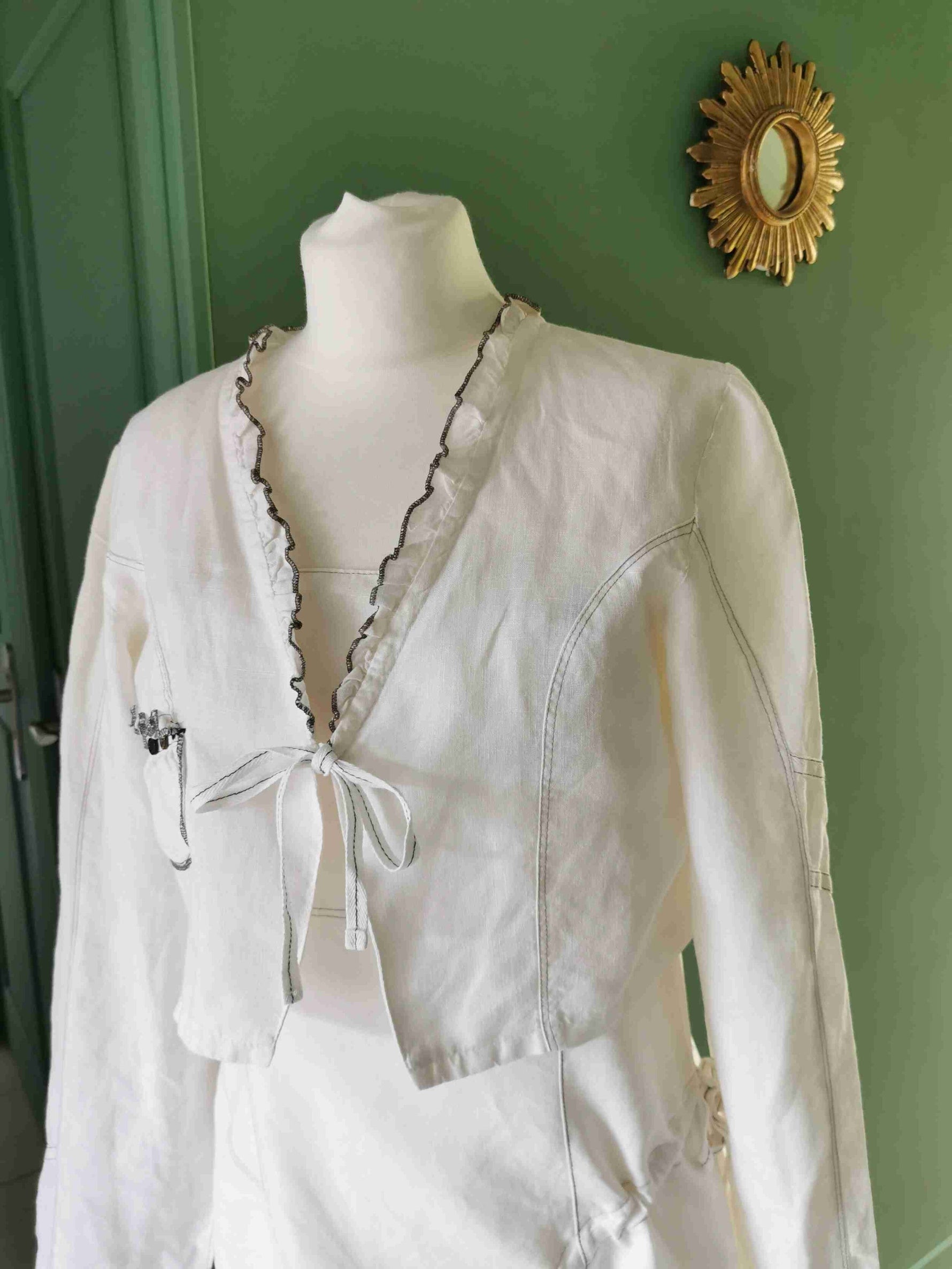 Prix unitaire parEnsemble en lin écru des années 90 Made in France