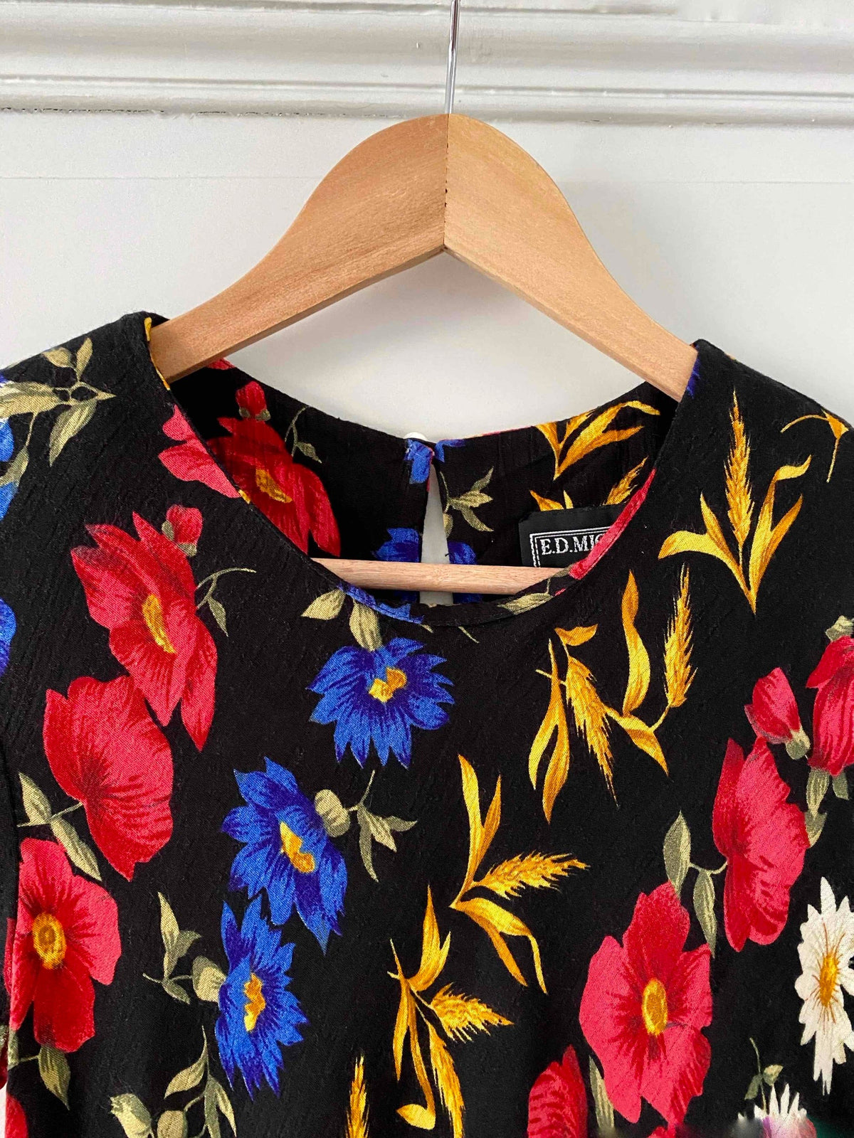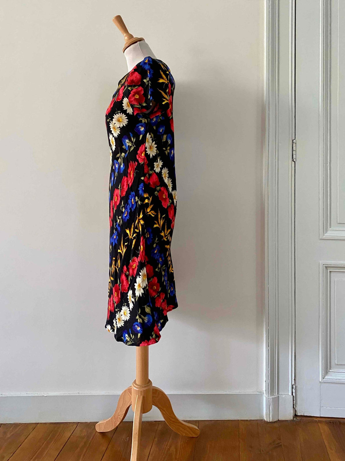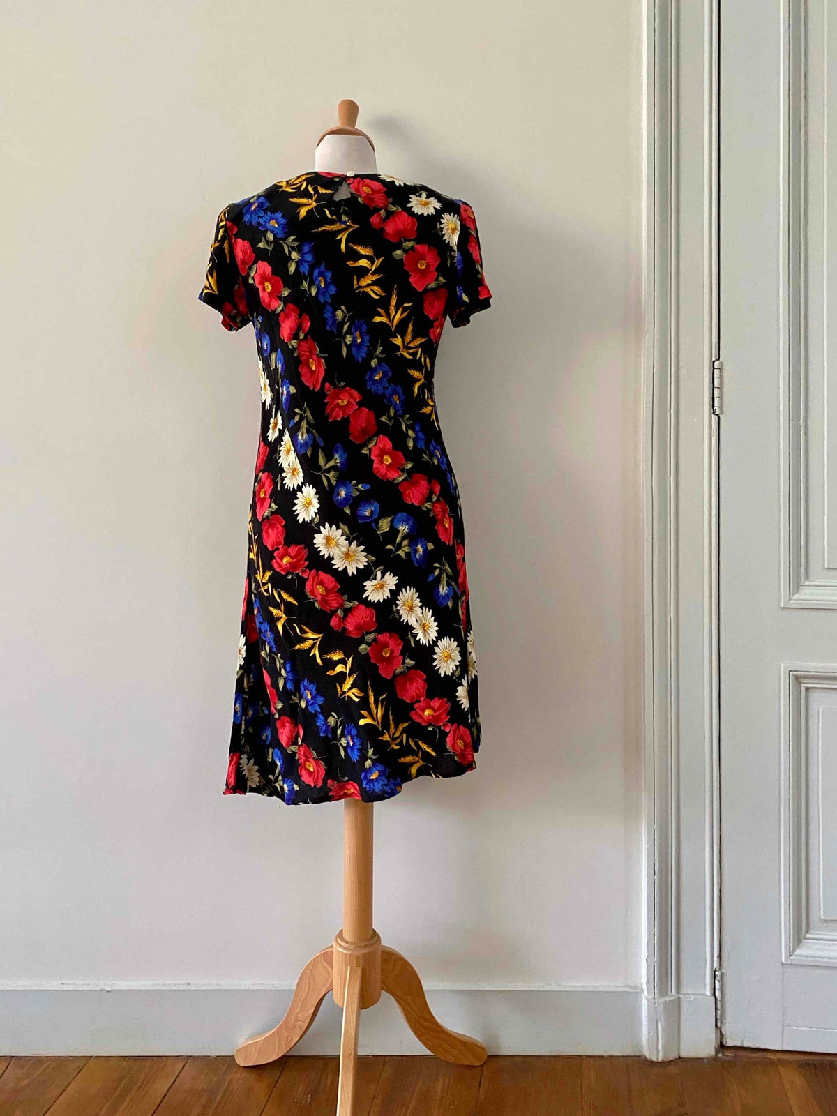 Prix unitaire parMini Robe à Fleurs en crépon viscose imprimé marguerites, coquelicots, épis de blés et bleuets, fabriquée aux USA, aisselles 45cm