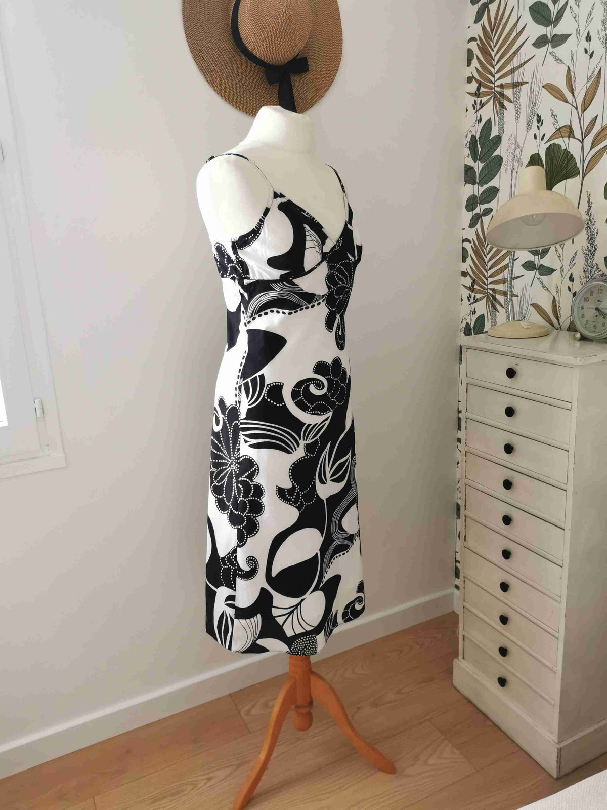 Prix unitaire parRobe à fleurs en coton noir et blanc