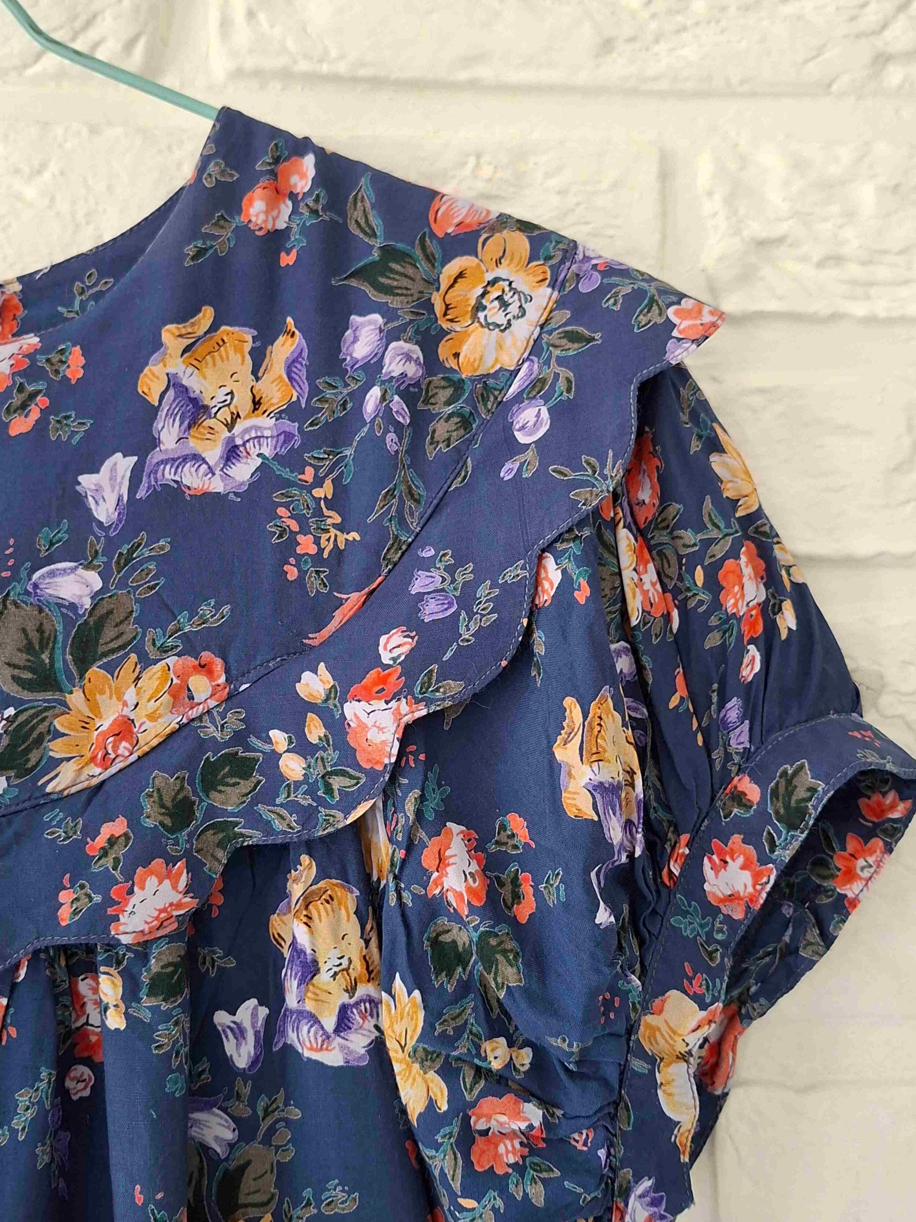 En viscose bleu avec fleurs multicolores