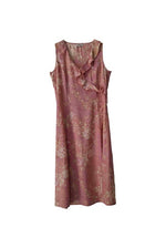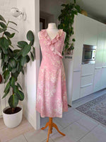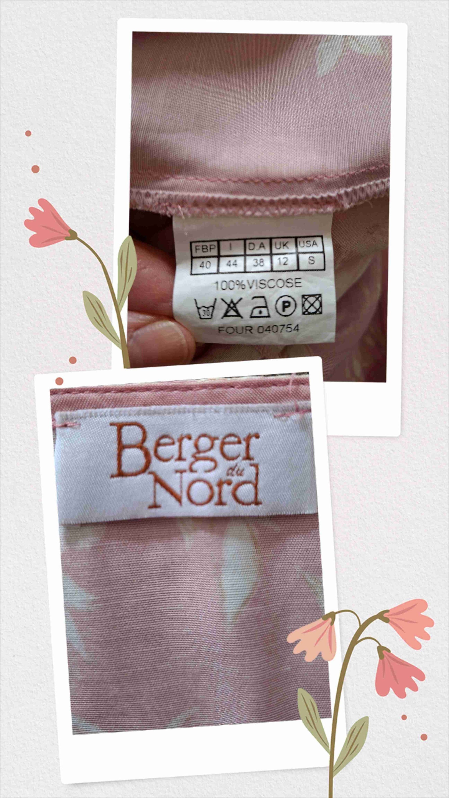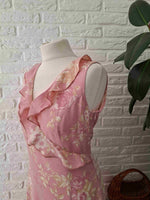 En viscose rose et fleurs écrues et beiges