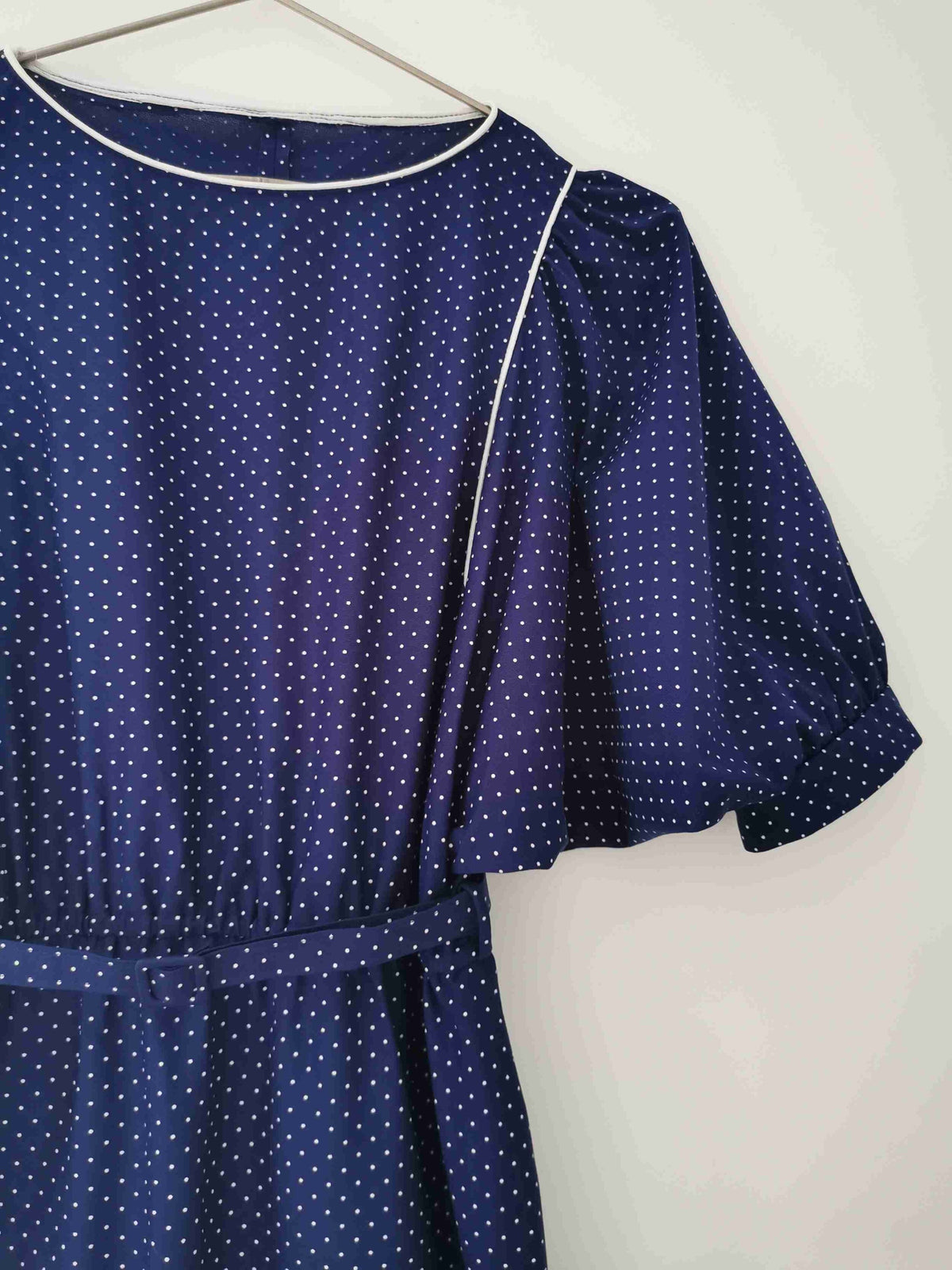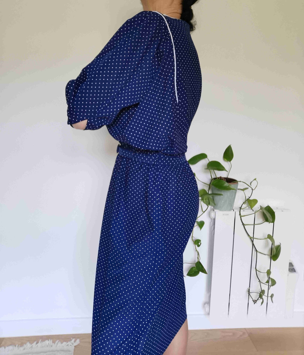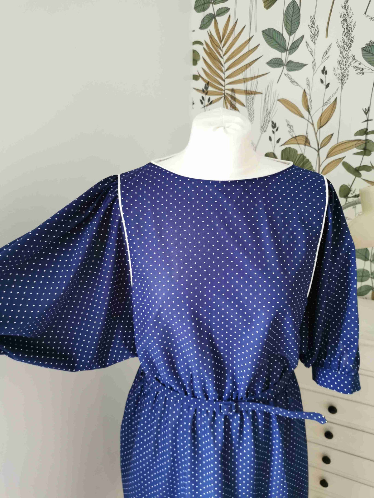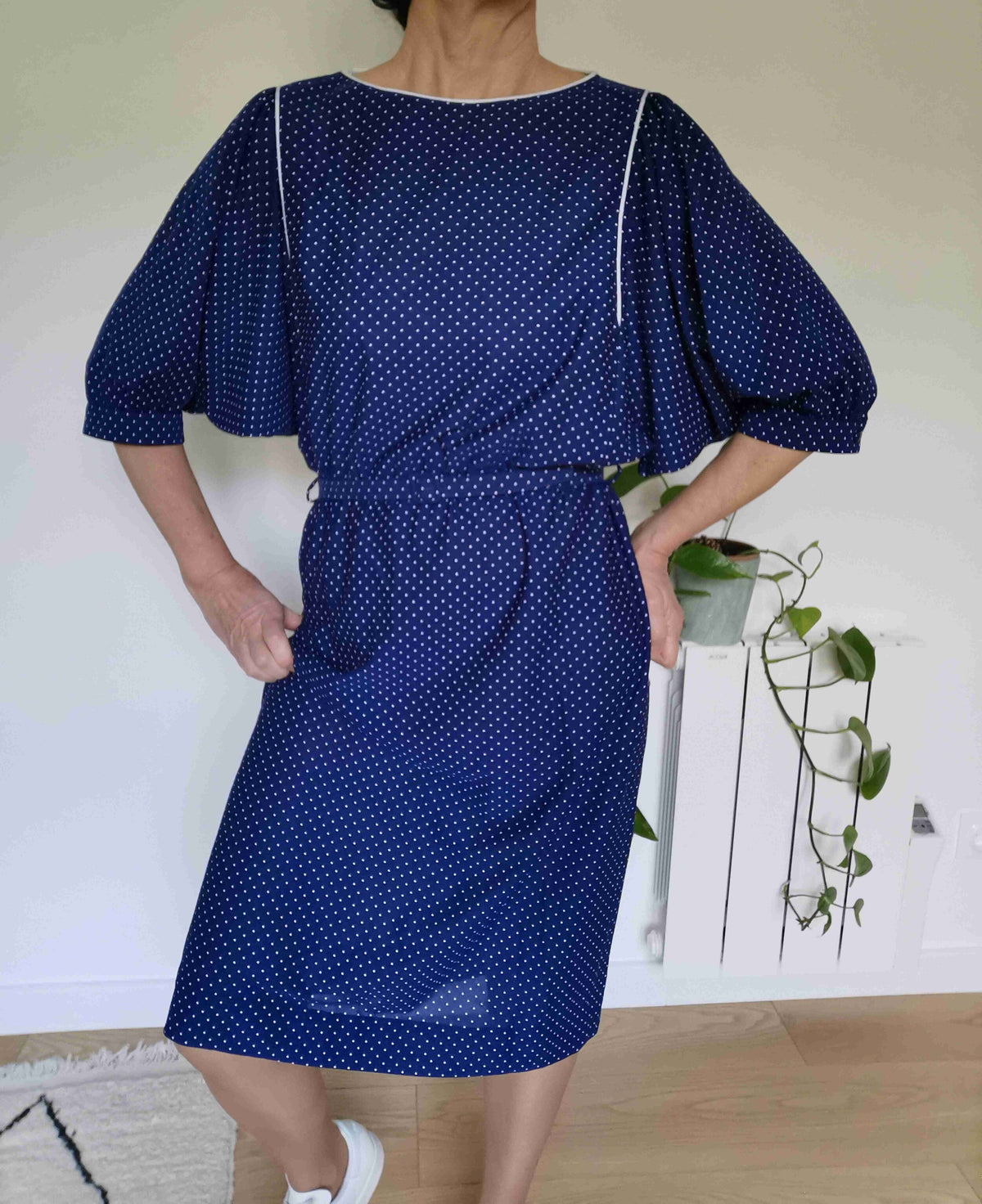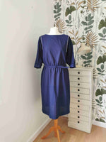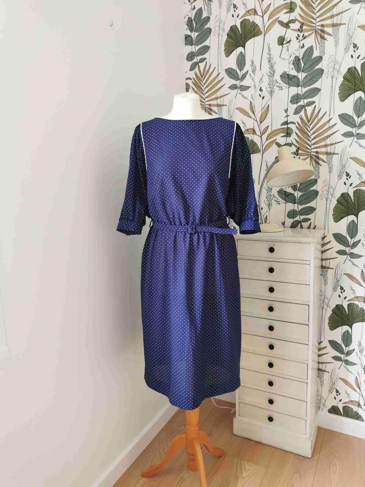 Agrémentée d'un passepoil blanc sur le haut de la robe