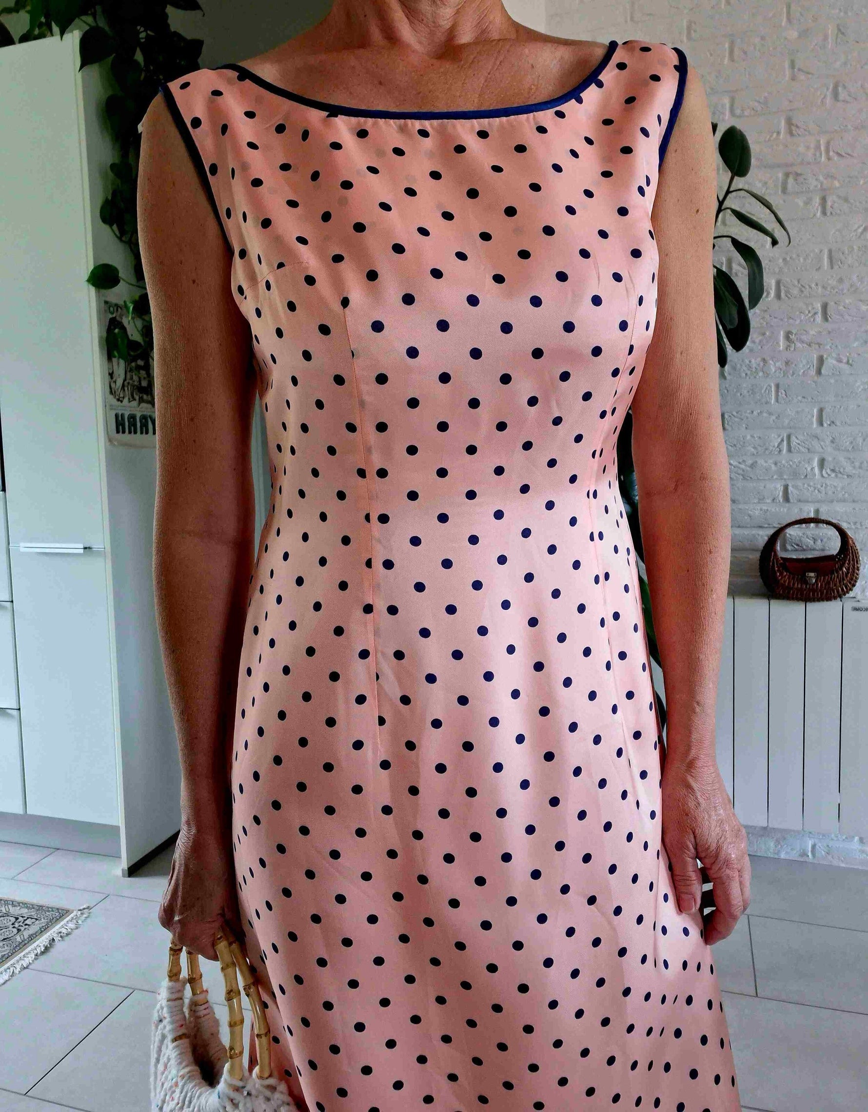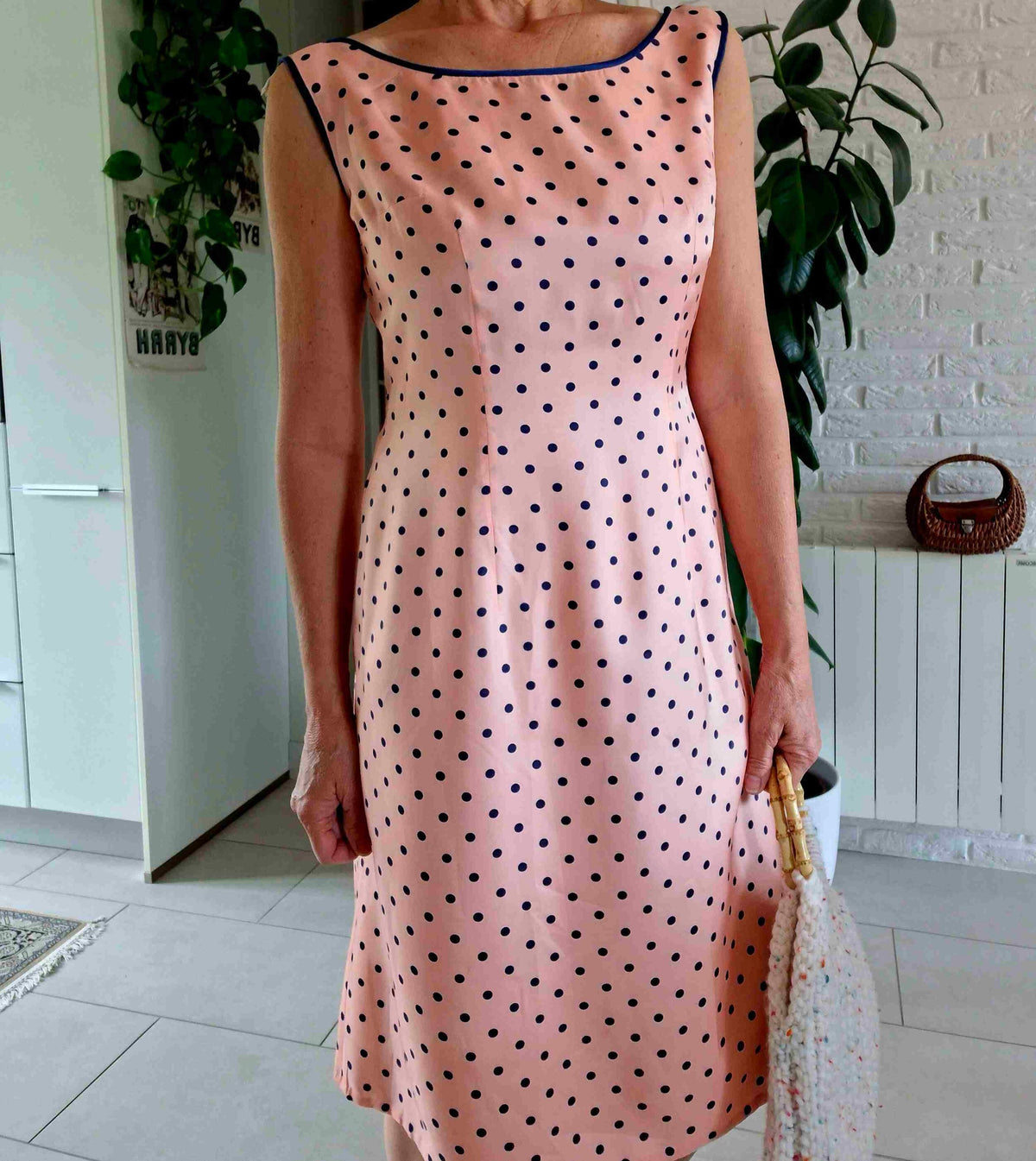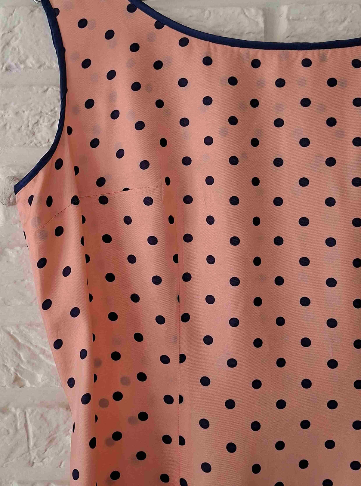 Finitions bleu foncé sur les emmanchures et sur l’encolure