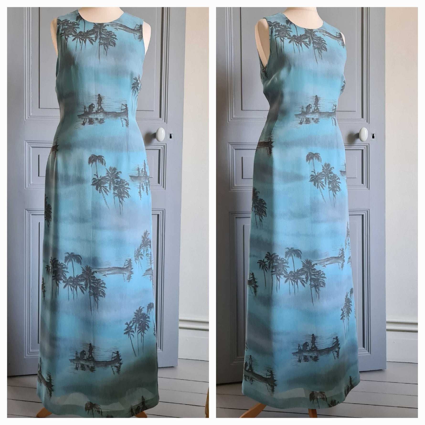 Prix unitaire parRobe longue en viscose bleu ciel.
