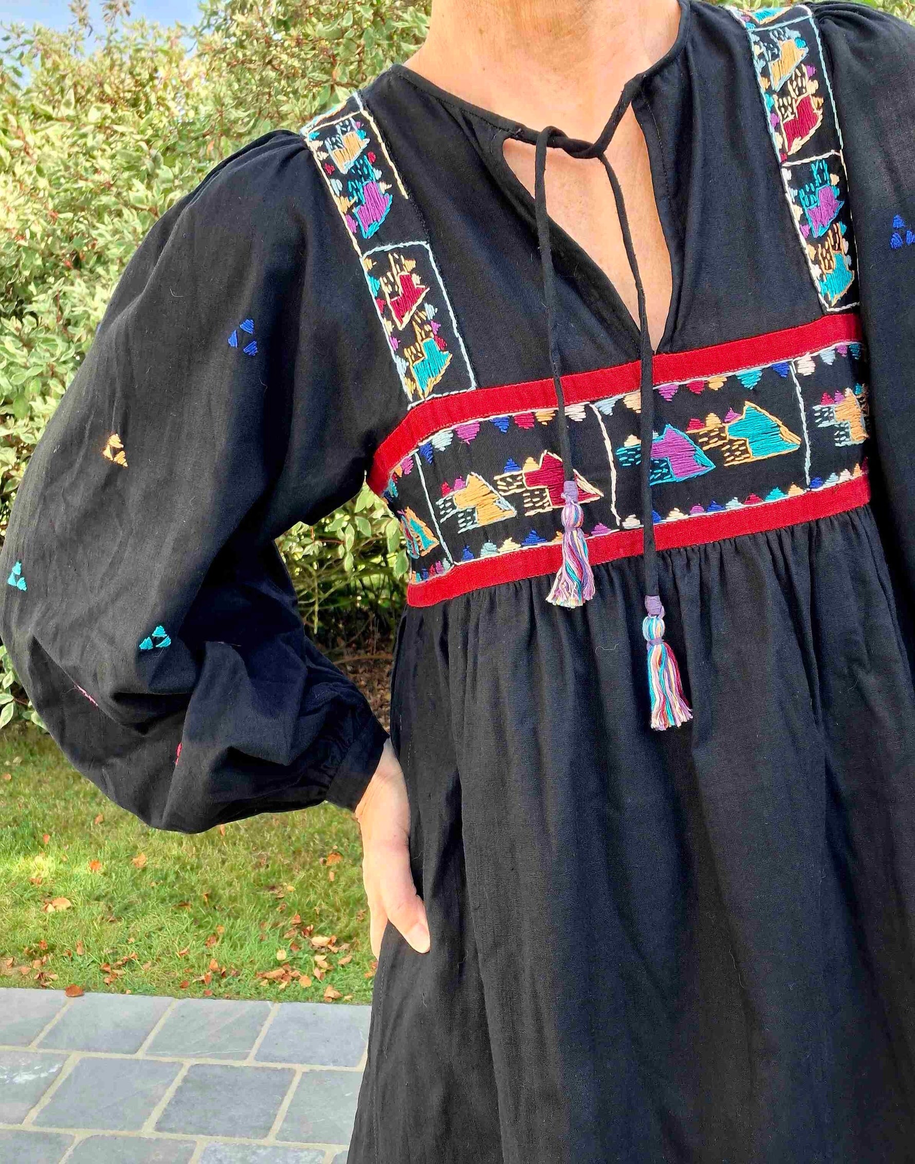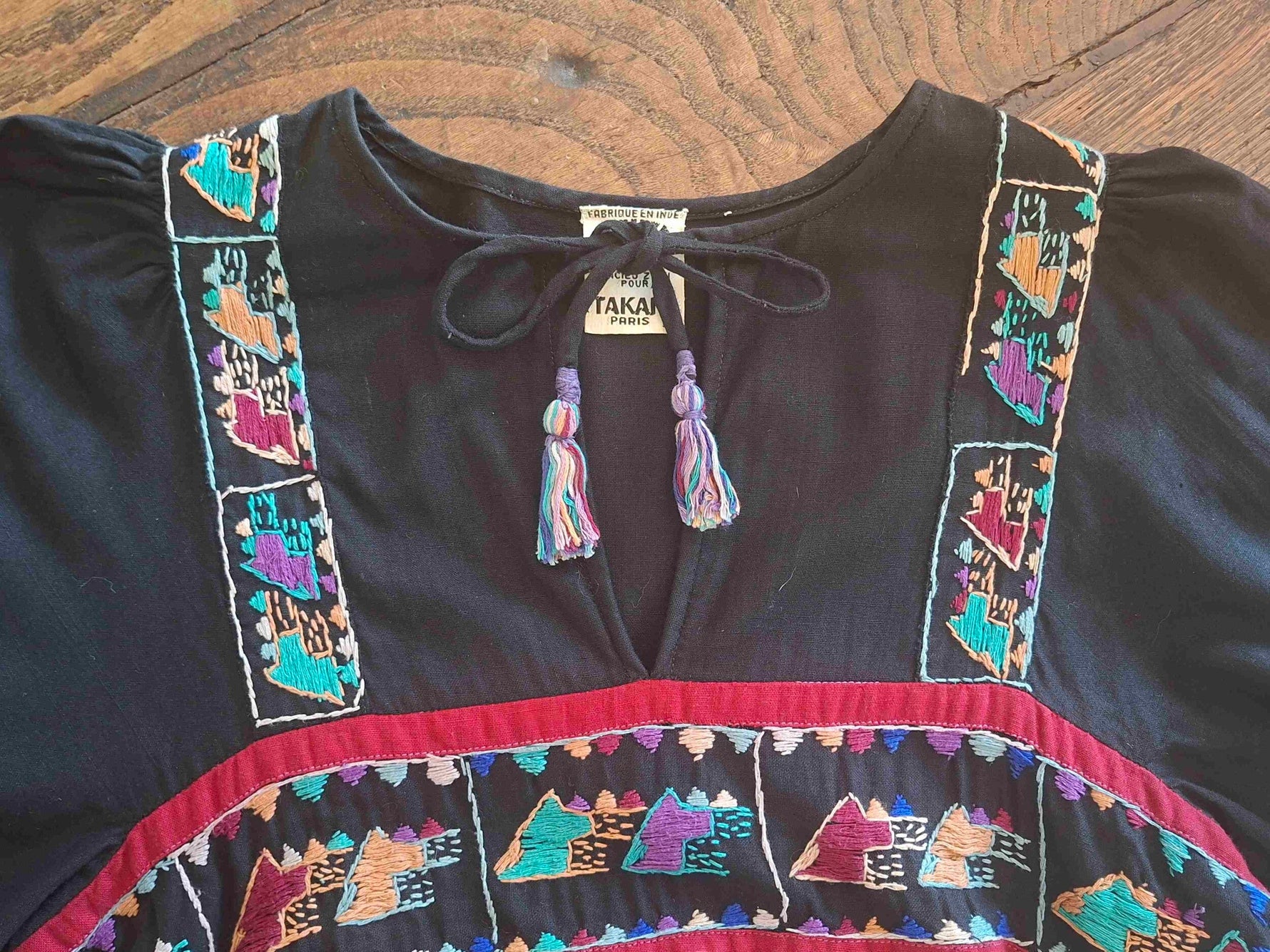 Prix unitaire parRobe noire brodée vintage 70/80 bohême
