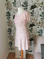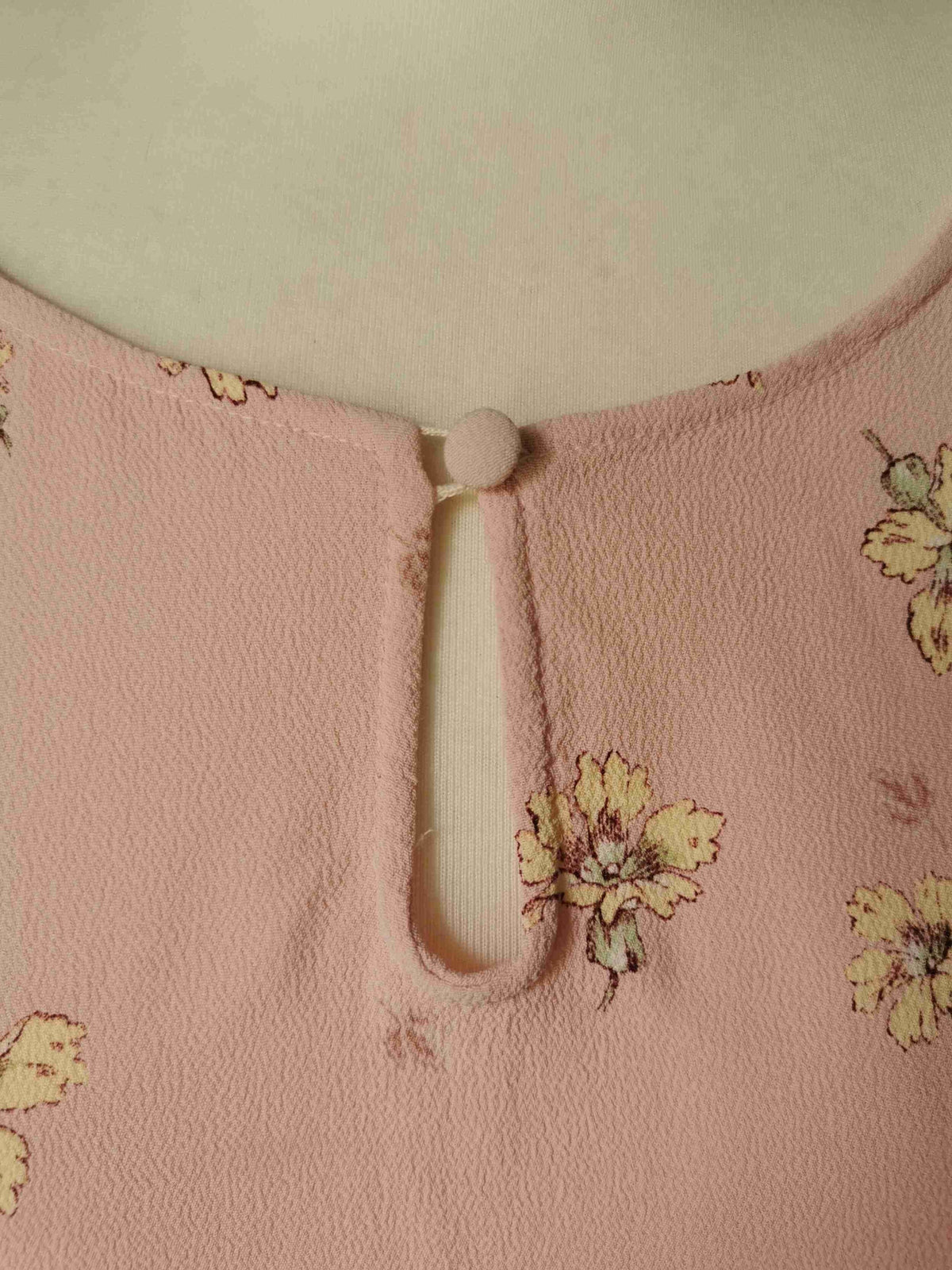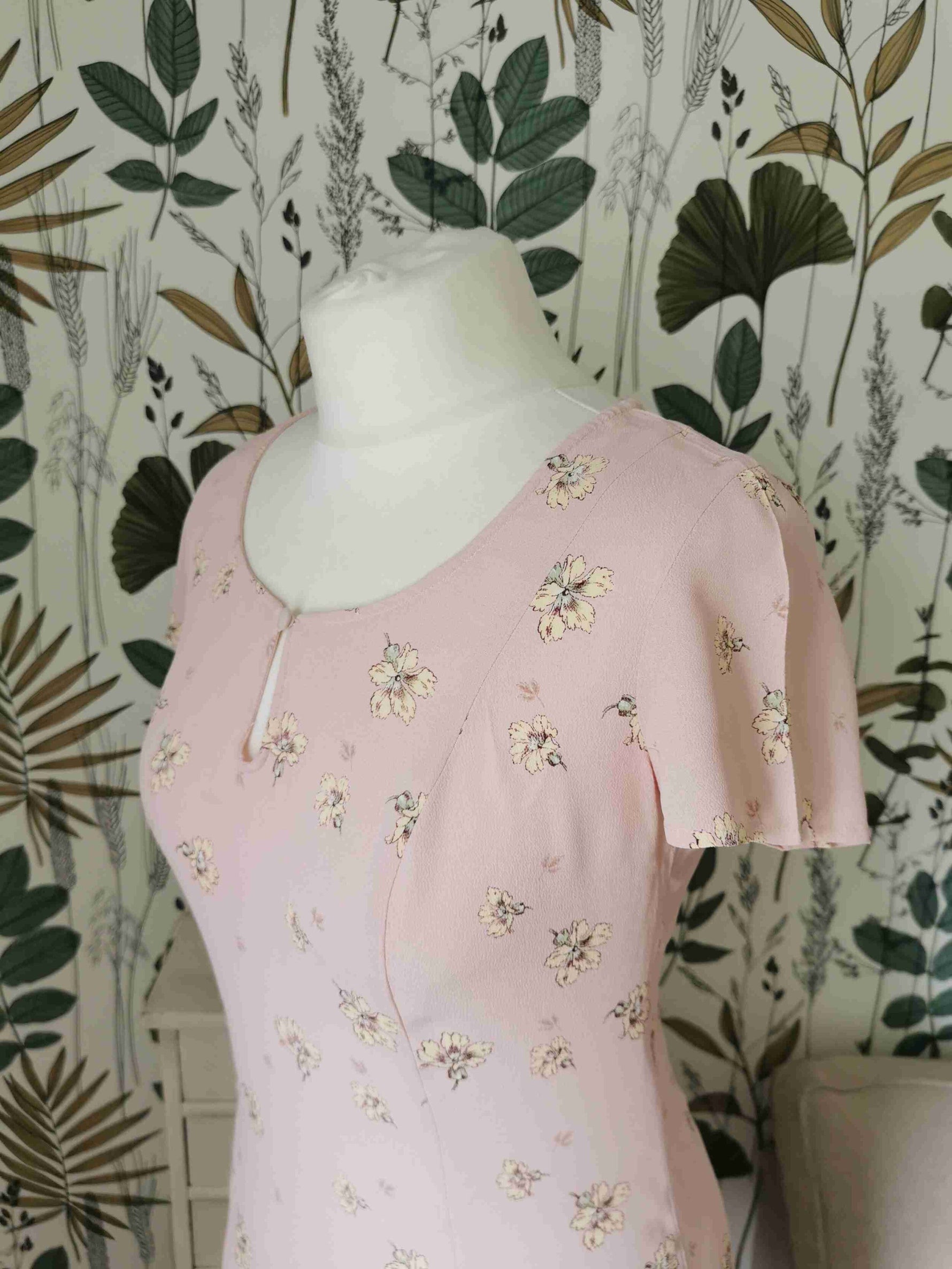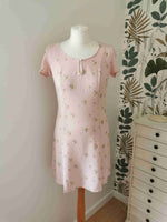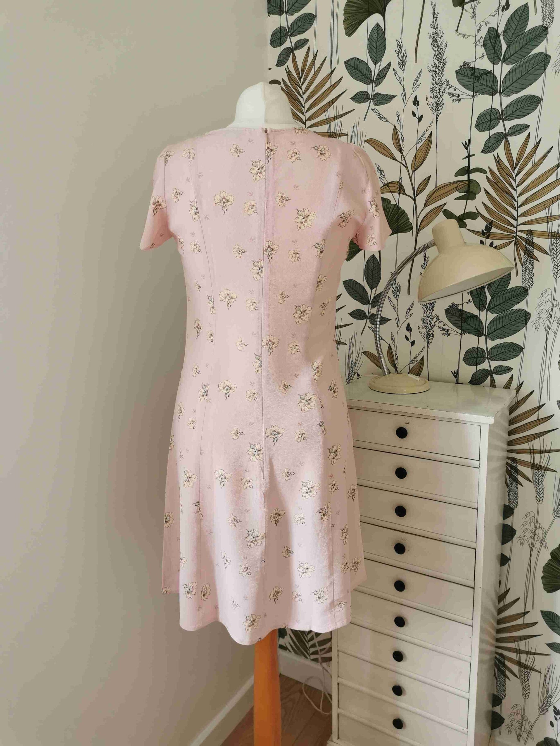 En crêpe de viscose rose pastel avec petites fleurs pastel